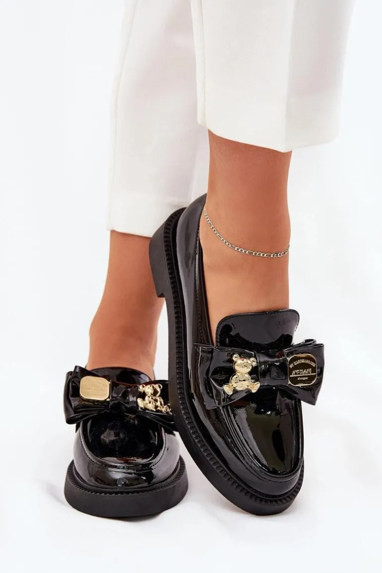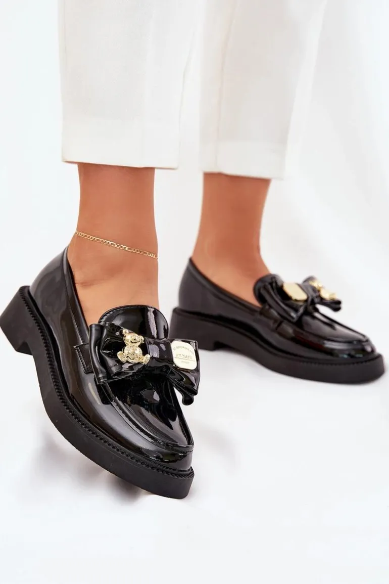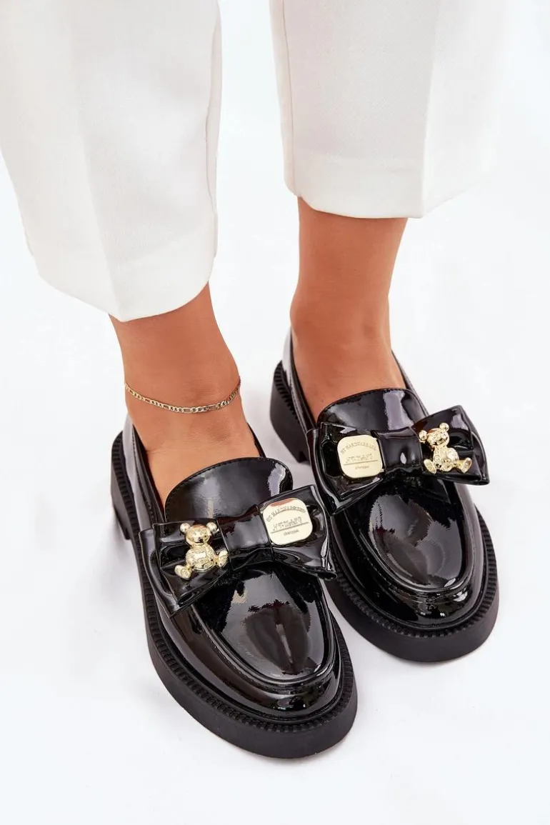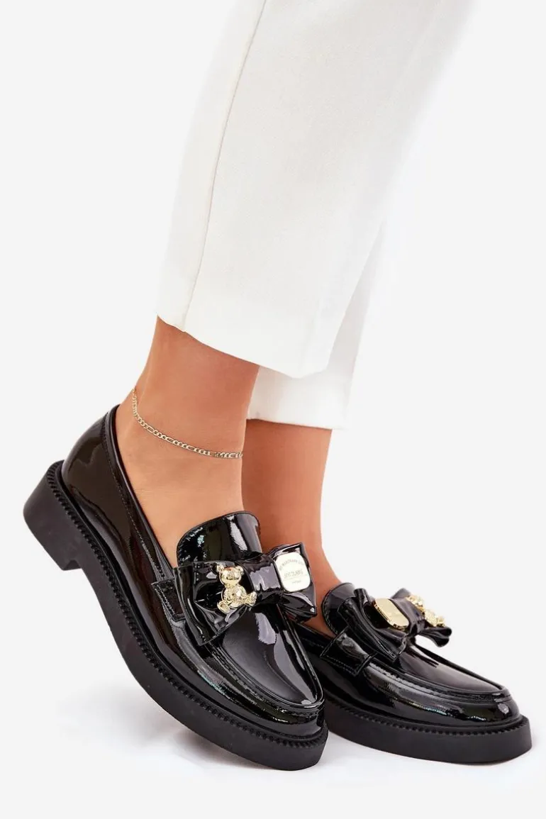 Modne mokasyny z eko skóry, które łączą elegancję z urokiem detali. Model posiada kokardkę z ozdobną broszką, która zdobi buty napisem i misiem, nadając im wyjątkowego charakteru. Zaokrąglone noski zapewniają komfort przez cały dzień, a klasyczny fason sprawia, że te mokasyny będą doskonałym wyborem do wielu stylizacji. Idealne na co dzień, łączą wygodę z modnym wyglądem. Przy wyborze rozmiaru prosimy sugerować się tabelą rozmiarów.