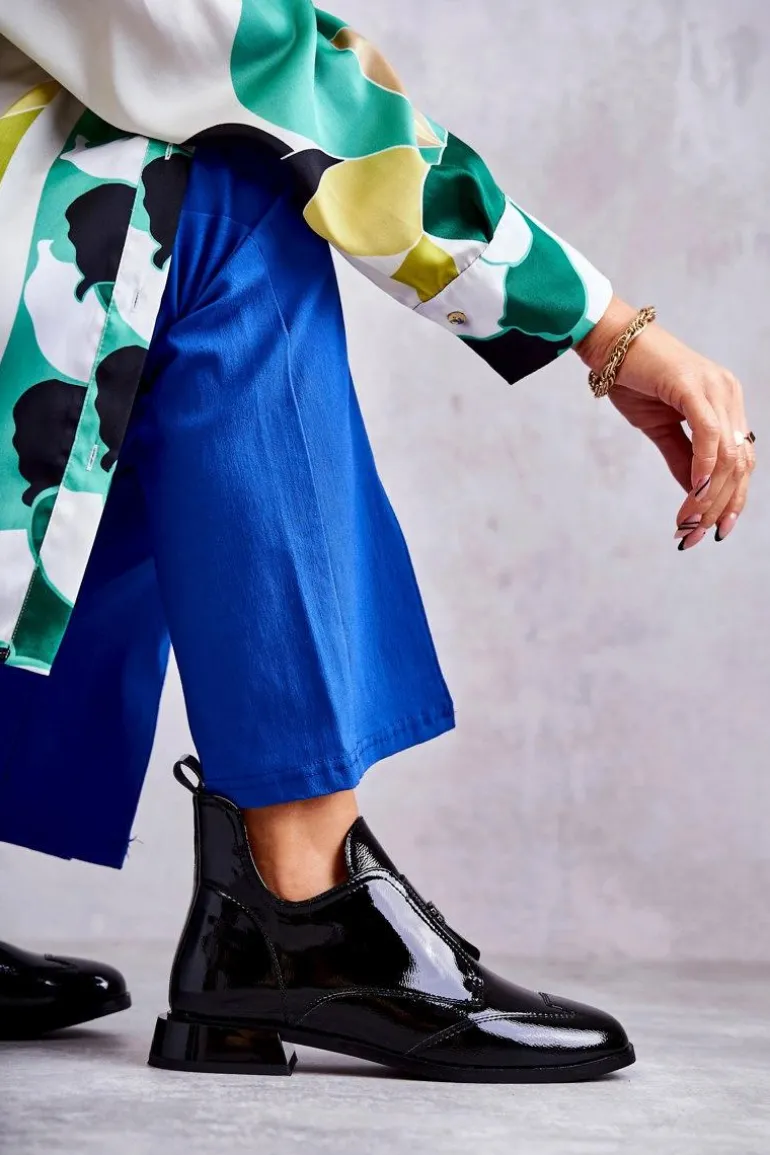 Ocieplane botki to idealny wybór na chłodne, jesienne dni! Wykonane z wysokiej jakości eko skóry, z niską cholewką. Dodatkowo botki posiadają wycięcia oraz ozdobny element na przodzie. Kwadratowy nosek zapewni wygodę podczas użytkowania. Ocieplenie w postaci koca obuwniczego ochroni przed chłodem. Botki osadzono na płaskim obcasie. Dodatkowo zapiętek jest usztywniany. Przy wyborze rozmiaru prosimy sugerować się tabelą rozmiarów.