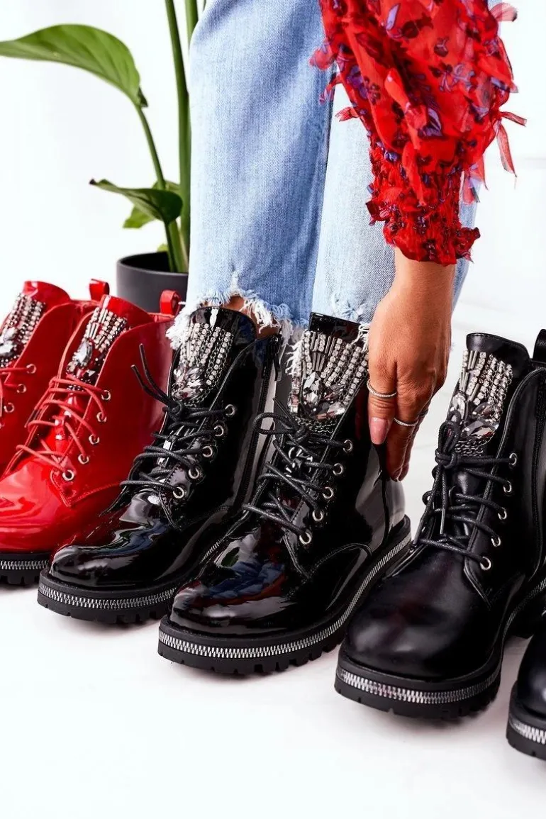 Wyjątkowe botki damskie wykonane z lakierowanej eko skóry. Workery są ocieplone miłym w dotyku kocem obuwniczym. Przy wyborze rozmiaru prosimy sugerować się tabelą rozmiarów.