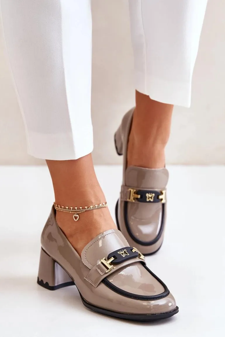 Damskie półbuty wykonane z naturalnej skóry. Osadzone na obcasie w formie klocka. Noski zaokrąglone. Głównym atutem tego modelu jest ozdoba na pasku, która nadaje wyjątkowego uroku. Miękka wkładka zapewni wygodę na każdym kroku. Idealne na co dzień, jak i na bardziej formalne okazje. Przy wyborze rozmiaru prosimy sugerować się tabelą rozmiarów.