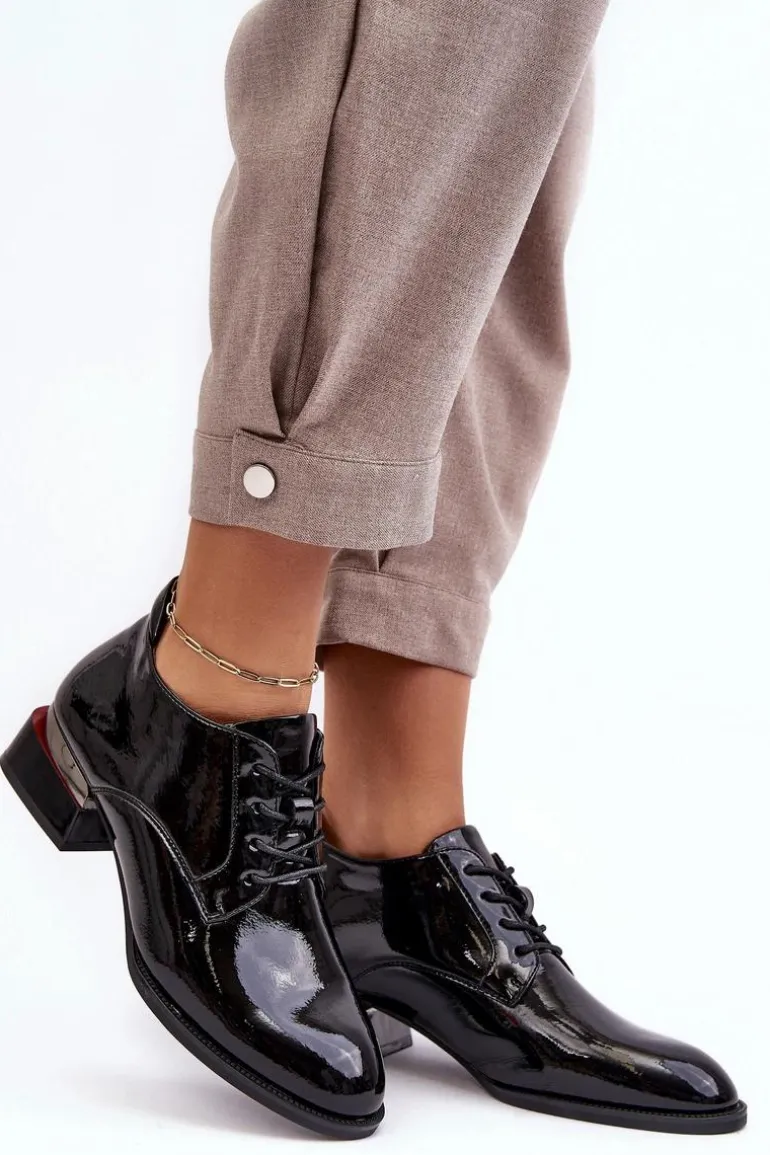 Półbuty damskie zostały wykonane z eko skóry. Osadzone na płaskim obcasie. Model ten posiada klasyczne sznurowanie. Noski zaokrąglone. Obcas oraz delikatnie usztywniany zapiętek zapewnią stabilność na każdym kroku. Ten elegancki model świetnie sprawdzi się w wielu stylizacjach! Koniecznie powinnaś mieć go w swojej szafie! Podczas wyboru rozmiaru prosimy sugerować się tabelą rozmiarów.