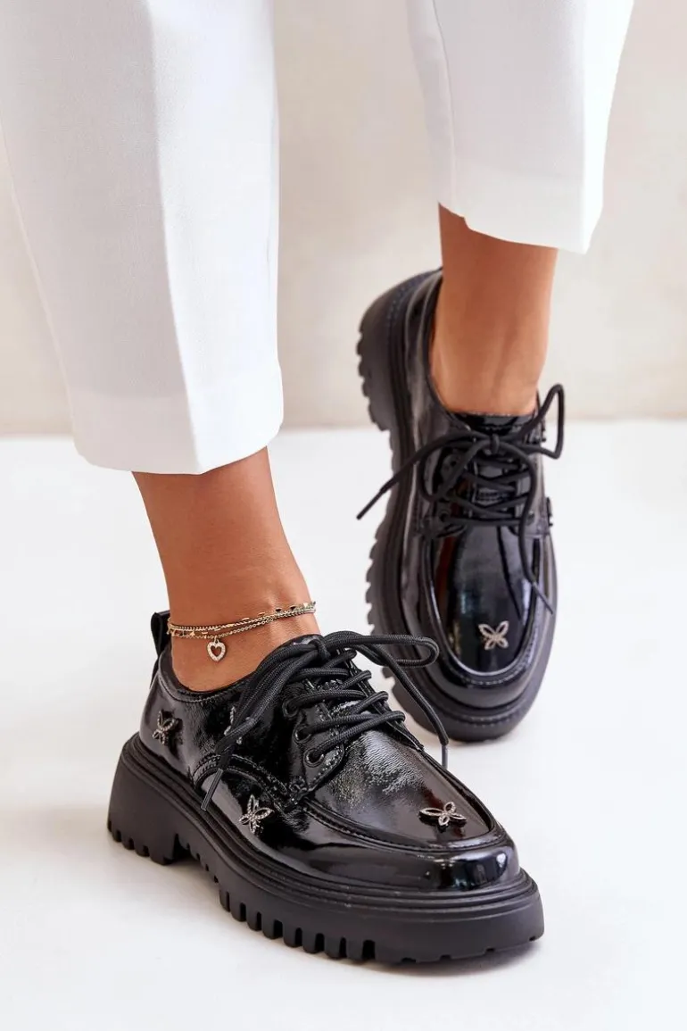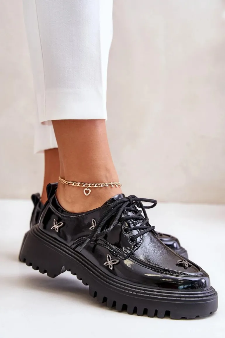 Półbuty damskie wykonane z naturalnej skóry, które zachwycają elegancją i wyrazistymi ozdobami. Model posiada zaokrąglone noski oraz klasyczne sznurowanie, które zapewnia idealne dopasowanie. Idealne zarówno do codziennych stylizacji, jak i na bardziej formalne okazje. Przy wyborze rozmiaru prosimy sugerować się tabelą rozmiarów.