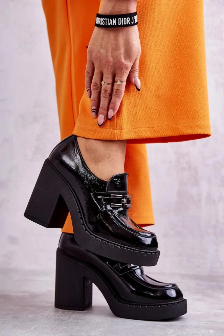 Cudowne półbuty na obcasie w postaci masywnego słupka z platformą. Cholewka oraz wkładka wykonane ze skóry naturalnej. Podeszwa wykonana z gumowego tworzywa jest antypoślizgowa. Ozdoba na przodzie dodaje tym butom elegancji. Model ten posiada usztywniany zapiętek, który dodatkowo stabilizuje stopę. Pod językiem znajduje się gumka, która sprawi, że but będzie idealnie dopasowany do stopy. Przy wyborze rozmiaru prosimy sugerować się tabelą rozmiarów.