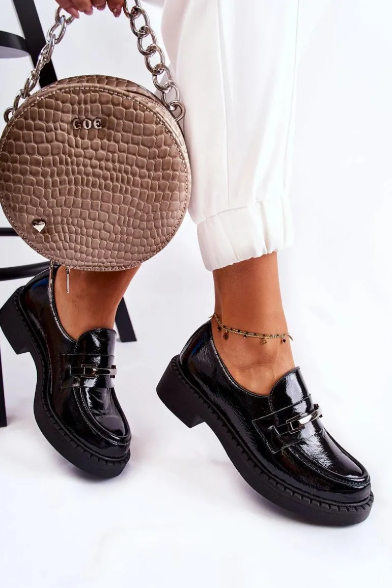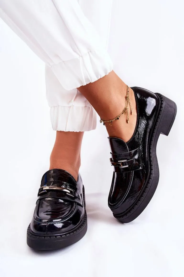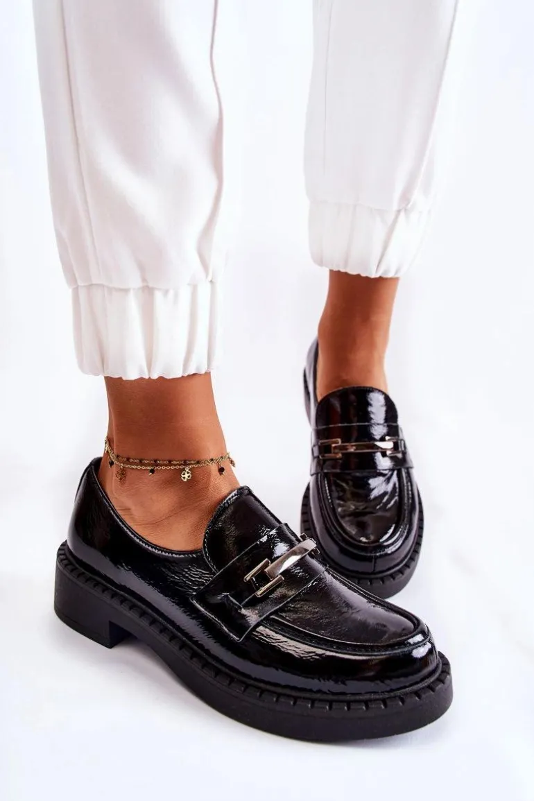 Lakierowane Półbuty Ze Srebrną Ozdobą Czarne Lemar Hestill