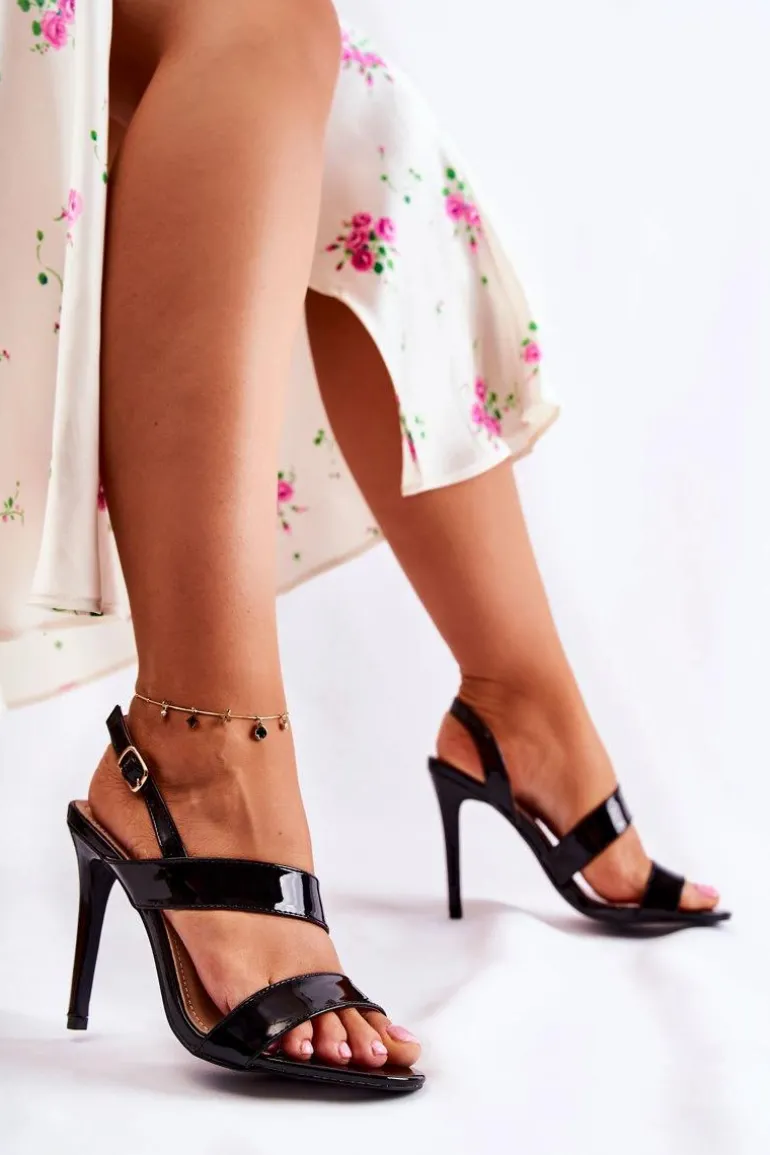 Wygodne sandały to marzenie każdej kobiety! Elegancki model został wykonany z lakierowanej eko skóry. Klasyczny obcas w postaci szpilki świetnie optycznie wydłuży i wysmukli nogi. Miękka, eko skórzana wkładka to gwarancja komfortu przez cały dzień. Sandałki są zapinane na regulowany pasek ze sprzączką. Buty świetne na wiele okazji! Koniecznie powinnaś mieć ten model w swojej szafie! Przy wyborze rozmiaru prosimy kierować tabelą rozmiarów.