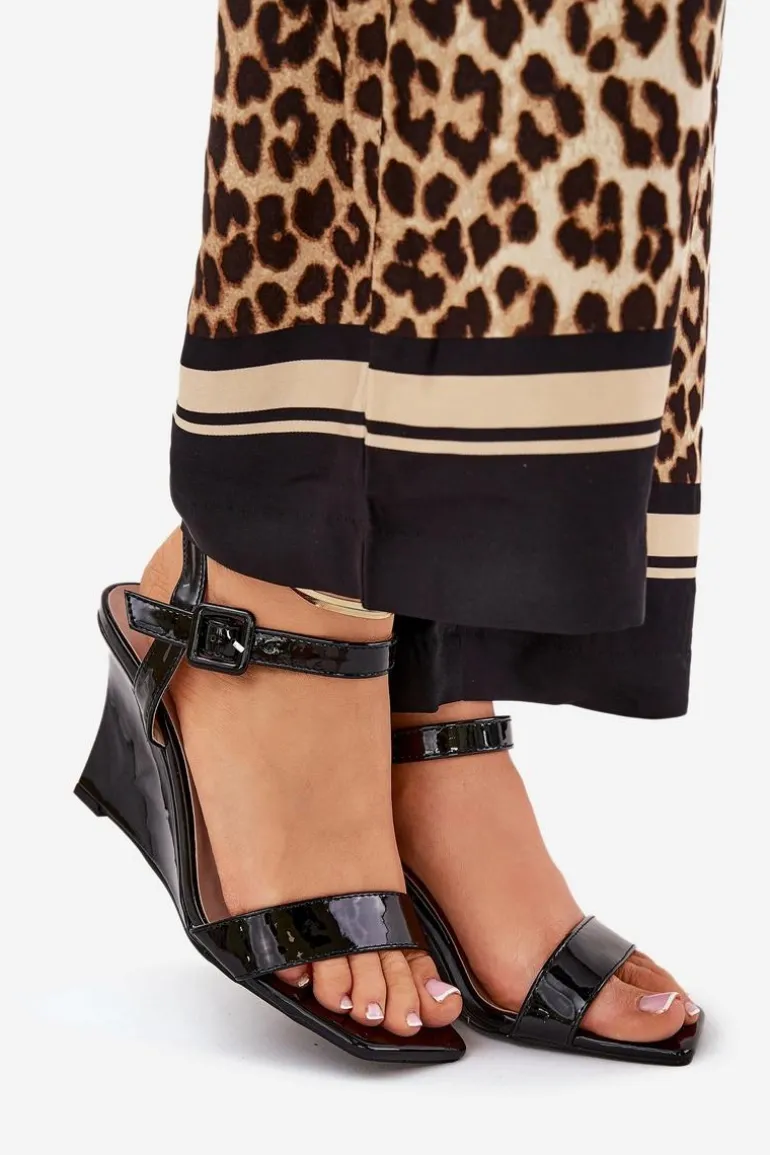 Stylowe sandały z eko skóry, osadzone na zwężanym koturnie, które łączą elegancję z nowoczesnym wyglądem. Zapinane na klamrę z regulowanym paskiem, co umożliwia idealne dopasowanie do stopy. Te modne sandały będą doskonałym wyborem na ciepłe dni, świetnie komponując się zarówno z sukienkami, jak i spodniami. Przy wyborze rozmiaru prosimy sugerować się tabelą rozmiarów.