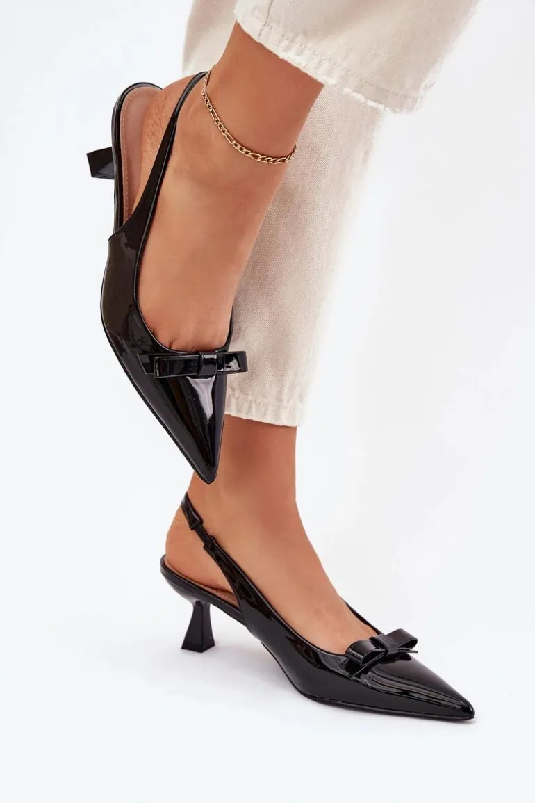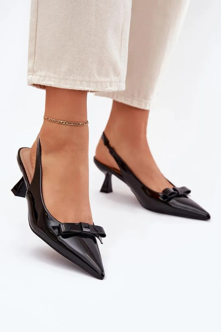Sandały damskie z eko skóry na niskiej szpilce to elegancka propozycja na specjalne okazje. Szpiczaste noski dodają im smukłości, a subtelna kokardka z przodu nadaje im kobiecego uroku. Stylowy i elegancki wygląd sprawia, że te sandały będą doskonałym wyborem na wieczorne wyjścia, wesela czy inne uroczystości. Przy wyborze rozmiaru prosimy sugerować się tabelą rozmiarów.