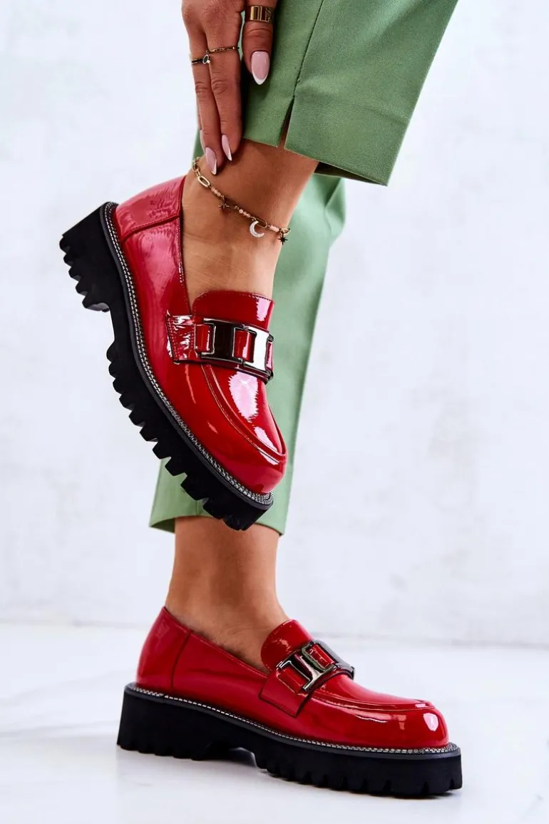 Lakierowane Skórzane Półbuty Czerwone Corine