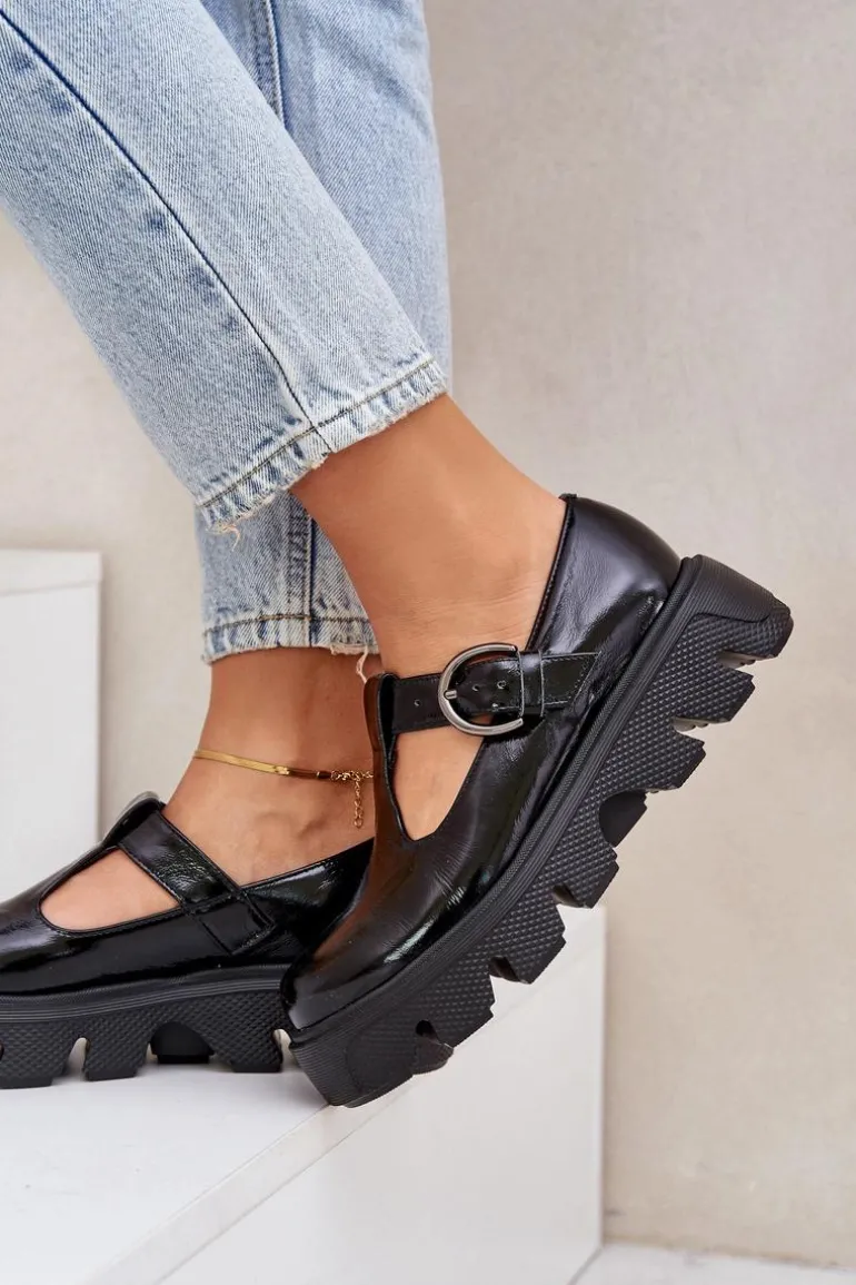 Modne półbuty damskie z masywną platformą to must-have w Twojej szafie! Wykonane z naturalnej skóry, co zapewnia trwałość i komfort. Usztywniany zapiętek oraz regulowany pasek z klamrą gwarantują idealne dopasowanie i wygodę. Ten model z pewnością wyróżni Twoje stylizacje, dodając im nowoczesnego charakteru. Idealne dla kobiet ceniących modny wygląd! Przy wyborze rozmiaru prosimy sugerować się tabelą rozmiarów.