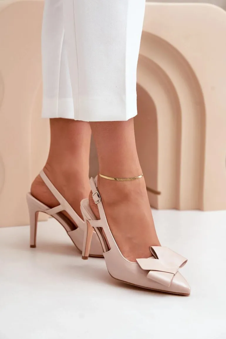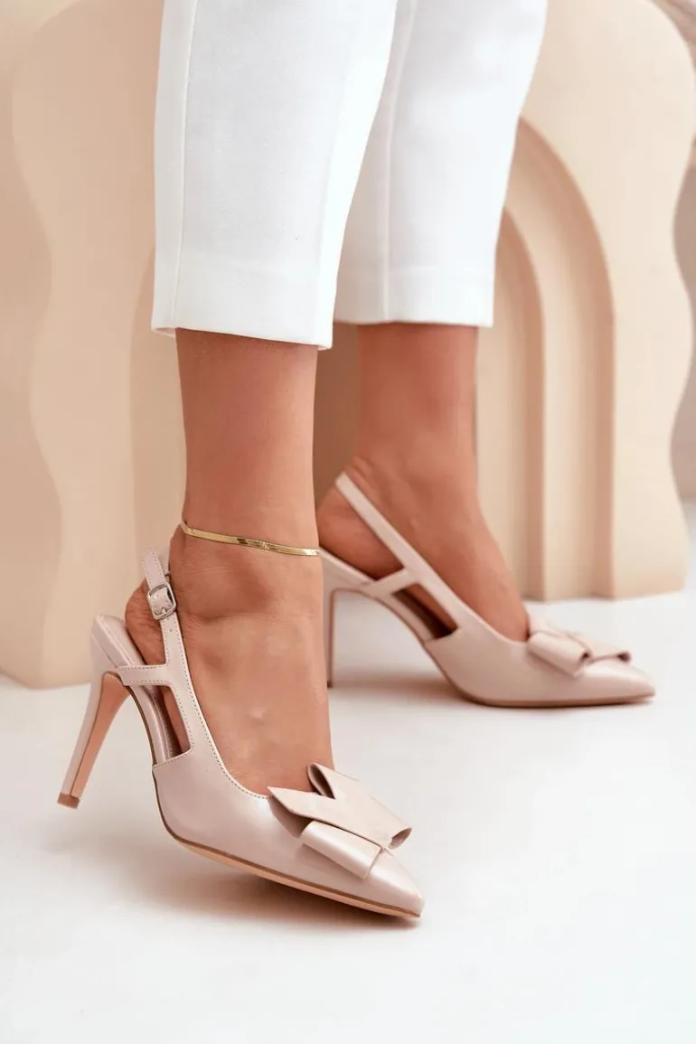 Eleganckie szpilki damskie wykonane z lakierowanej eko skóry to stylowa propozycja na wyjątkowe okazje. Model charakteryzuje się szpiczastymi noskami, które optycznie wysmuklają nogi, oraz regulowanym paskiem ze sprzączką, zapewniającym doskonałe dopasowanie. Przód buta zdobi efektowna ozdoba, dodając całości wyrazistego charakteru. Idealne do eleganckich sukienek lub wieczorowych stylizacji! Przy wyborze rozmiaru prosimy sugerować się tabelą rozmiarów.