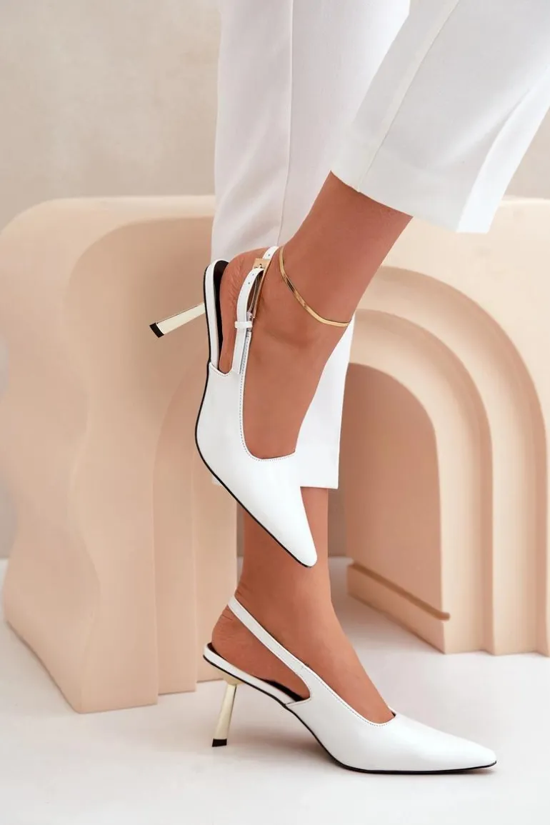 Lakierowane Szpilki Z Odkrytą Piętą Białe Filona