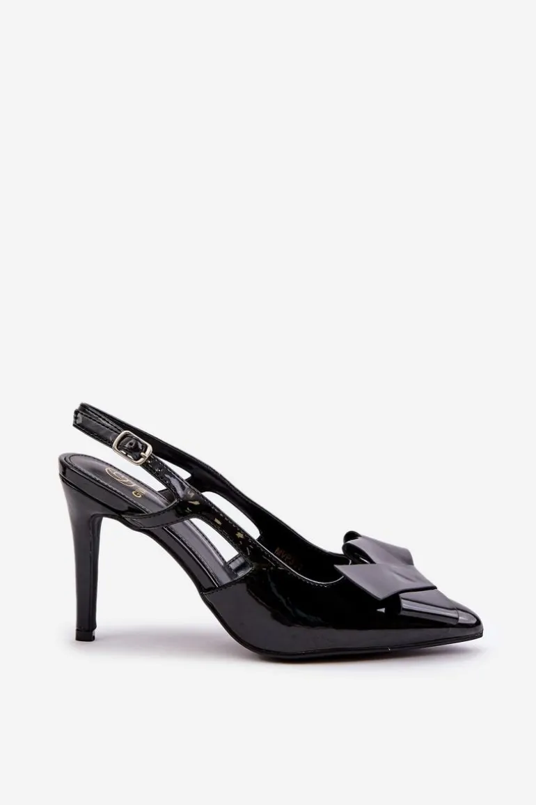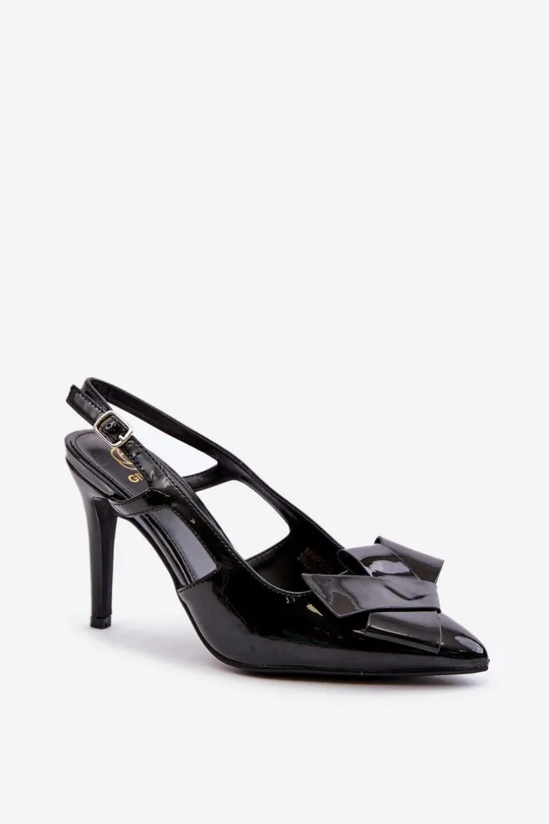 Eleganckie szpilki damskie wykonane z lakierowanej eko skóry to stylowa propozycja na wyjątkowe okazje. Model charakteryzuje się szpiczastymi noskami, które optycznie wysmuklają nogi, oraz regulowanym paskiem ze sprzączką, zapewniającym doskonałe dopasowanie. Przód buta zdobi efektowna ozdoba, dodając całości wyrazistego charakteru. Idealne do eleganckich sukienek lub wieczorowych stylizacji! Przy wyborze rozmiaru prosimy sugerować się tabelą rozmiarów.