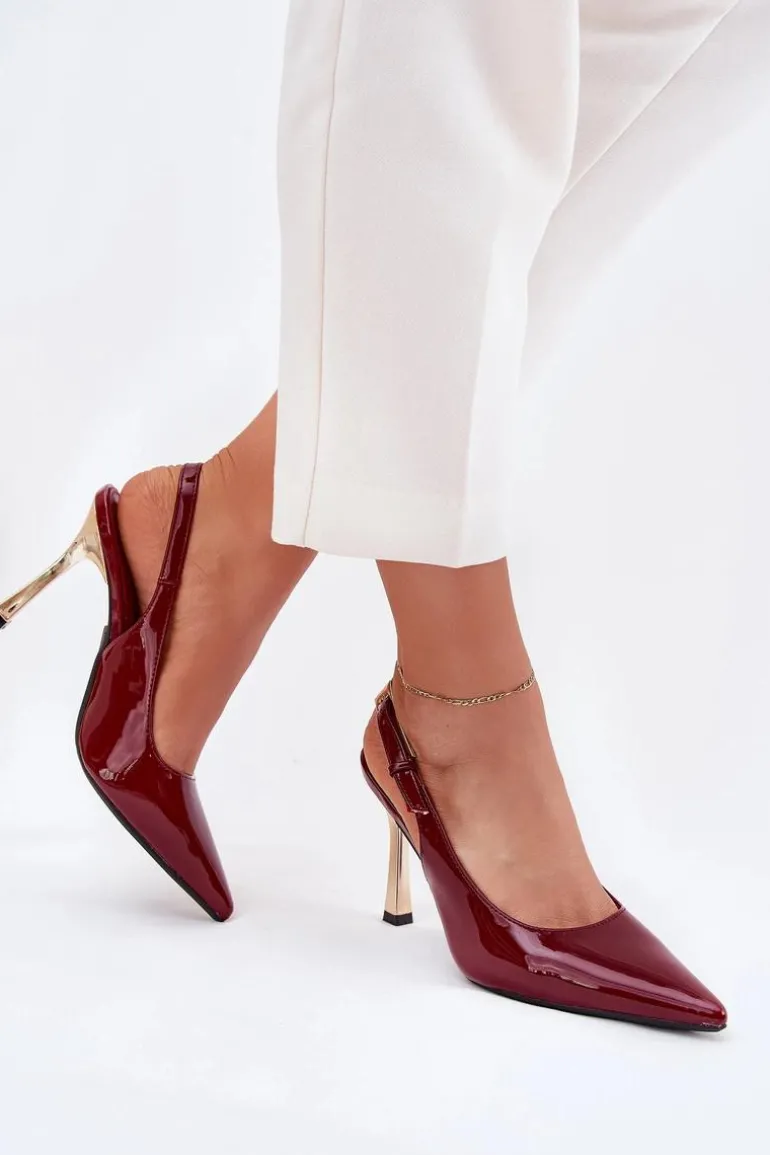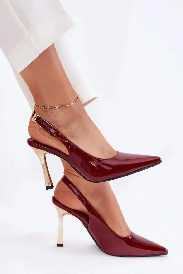 Lakierowane eleganckie szpilki z odkrytą piętą to połączenie klasyki i nowoczesności. Szpiczaste noski optycznie wysmuklają nogi, a zapinane na regulowany pasek ze sprzączką, zapewniają idealne dopasowanie i stabilność. Te szpilki doskonale sprawdzą się na specjalne okazje, łącząc elegancję z subtelnym, ale wyrazistym stylem. Idealne do wieczorowych stylizacji, dodają szyku i pewności siebie. Przy wyborze rozmiaru prosimy sugerować się tabelą rozmiarów.