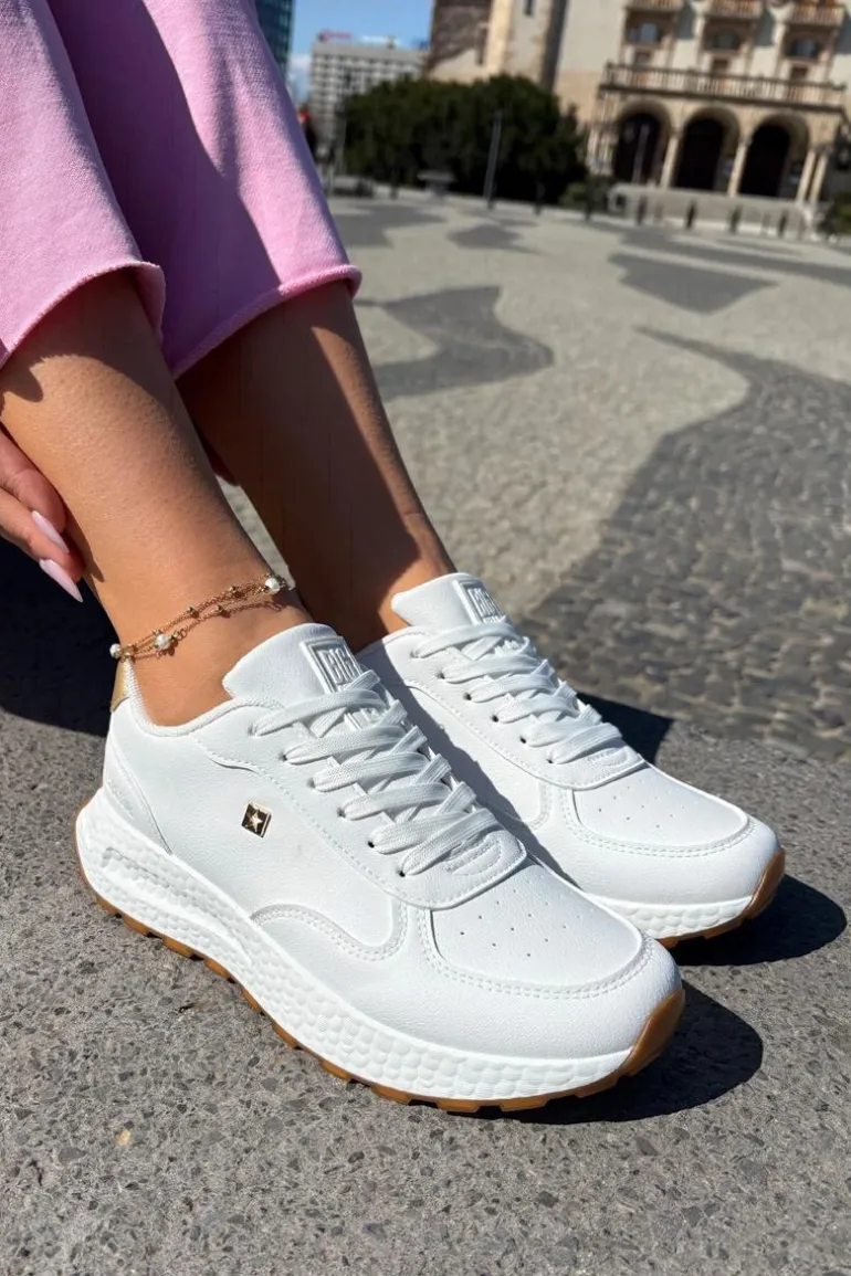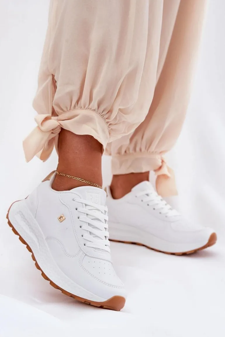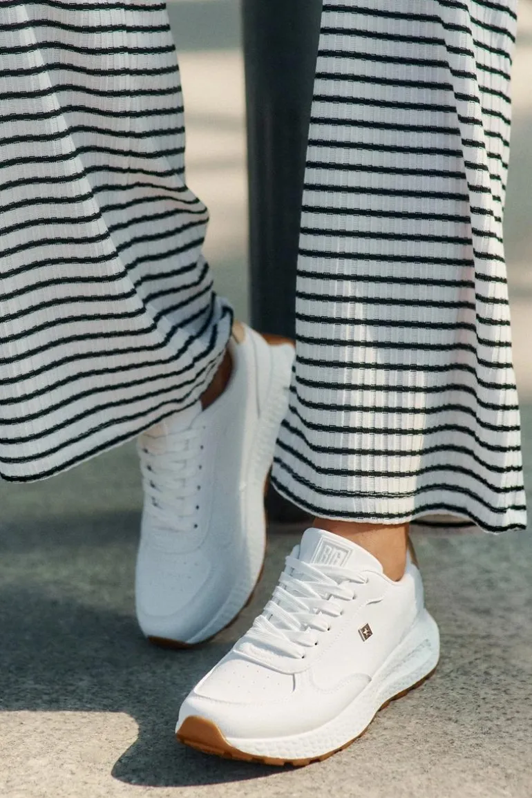 Lekkie buty sportowe od marki Big Star. Osadzone na platformie, łączą nowoczesny wygląd z funkcjonalnością. Model ten posiada innowacyjną wkładkę HI-POLY SYSTEM, wykonaną z materiału pochodzącego z recyklingu. Wkładka charakteryzuje się odpornością na ścieranie i odkształcenia, skutecznie absorbuje wilgoć oraz amortyzuje wstrząsy, zapewniając wygodę nawet podczas intensywnych aktywności. Te buty to idealne połączenie komfortu, trwałości i modnego wyglądu, doskonałe na co dzień i do sportowych stylizacji. Przy wyborze rozmiaru prosimy sugerować się tabelą rozmiarów.