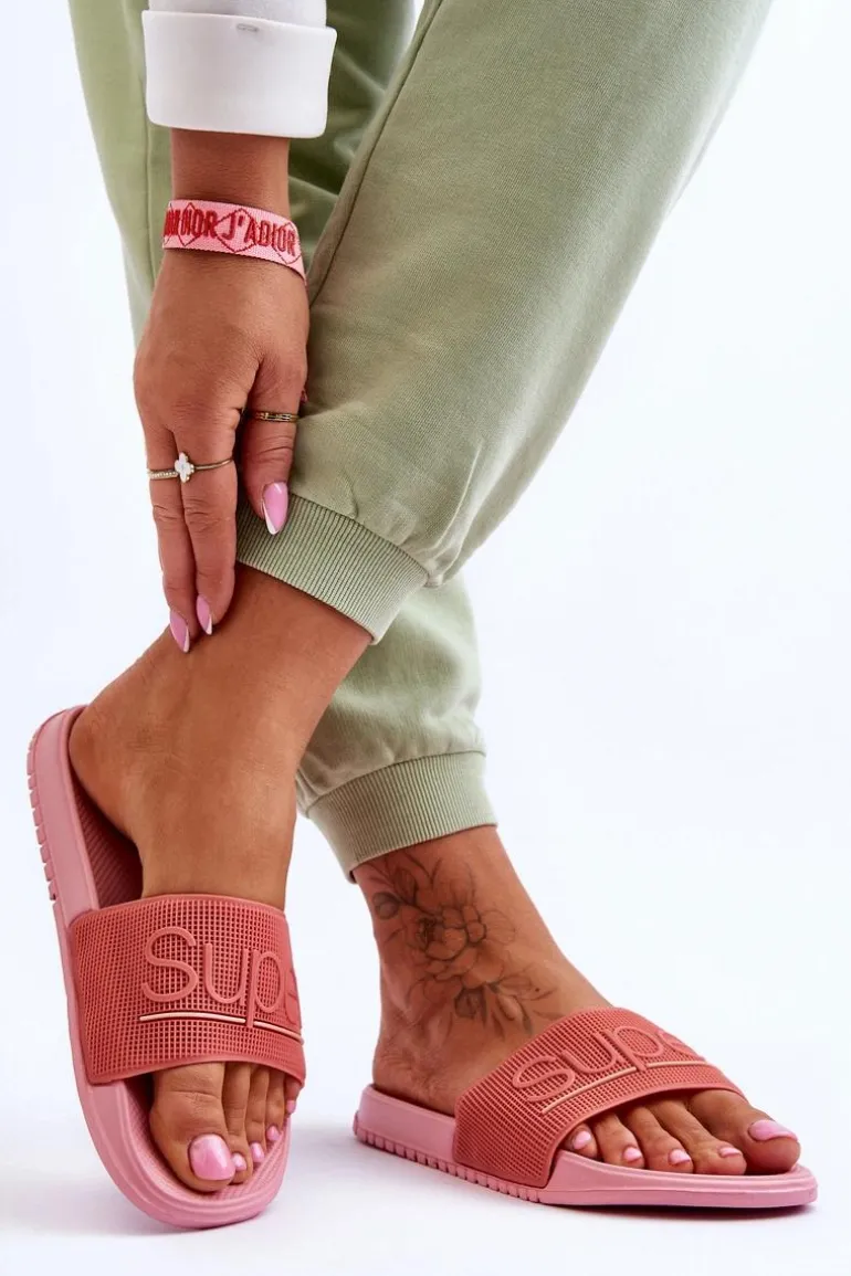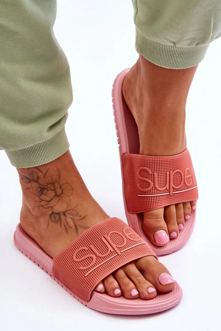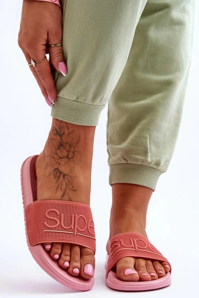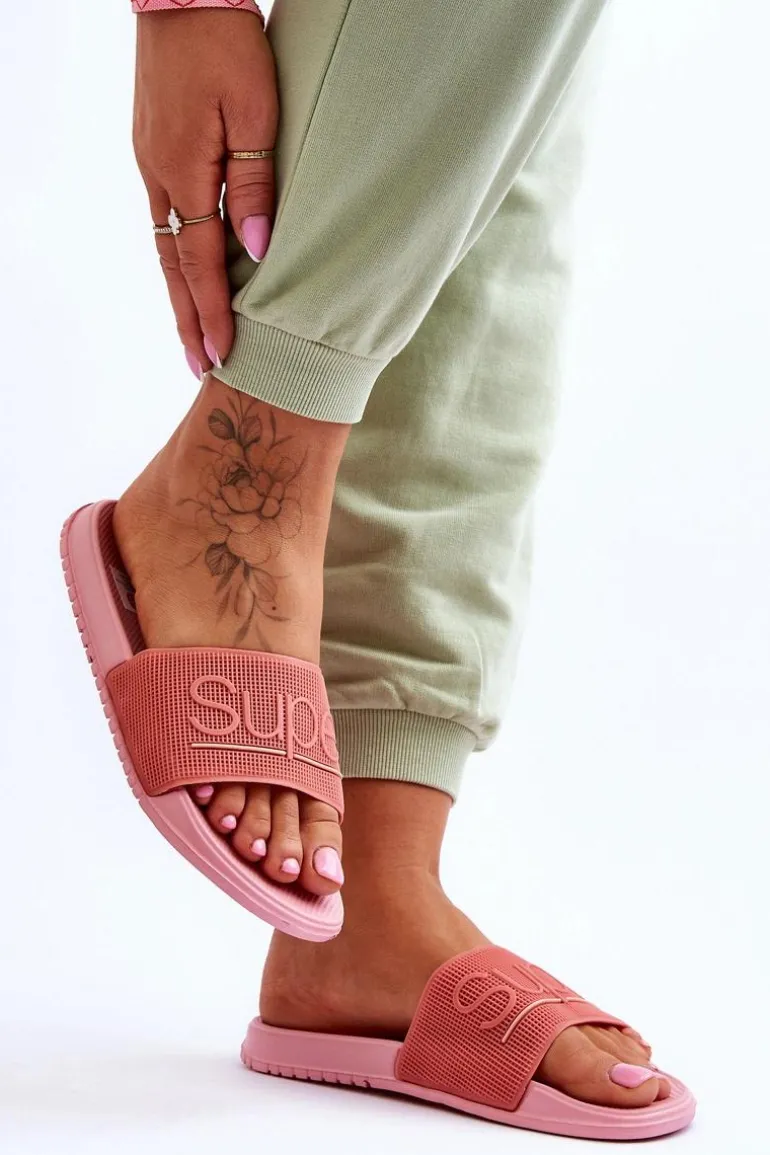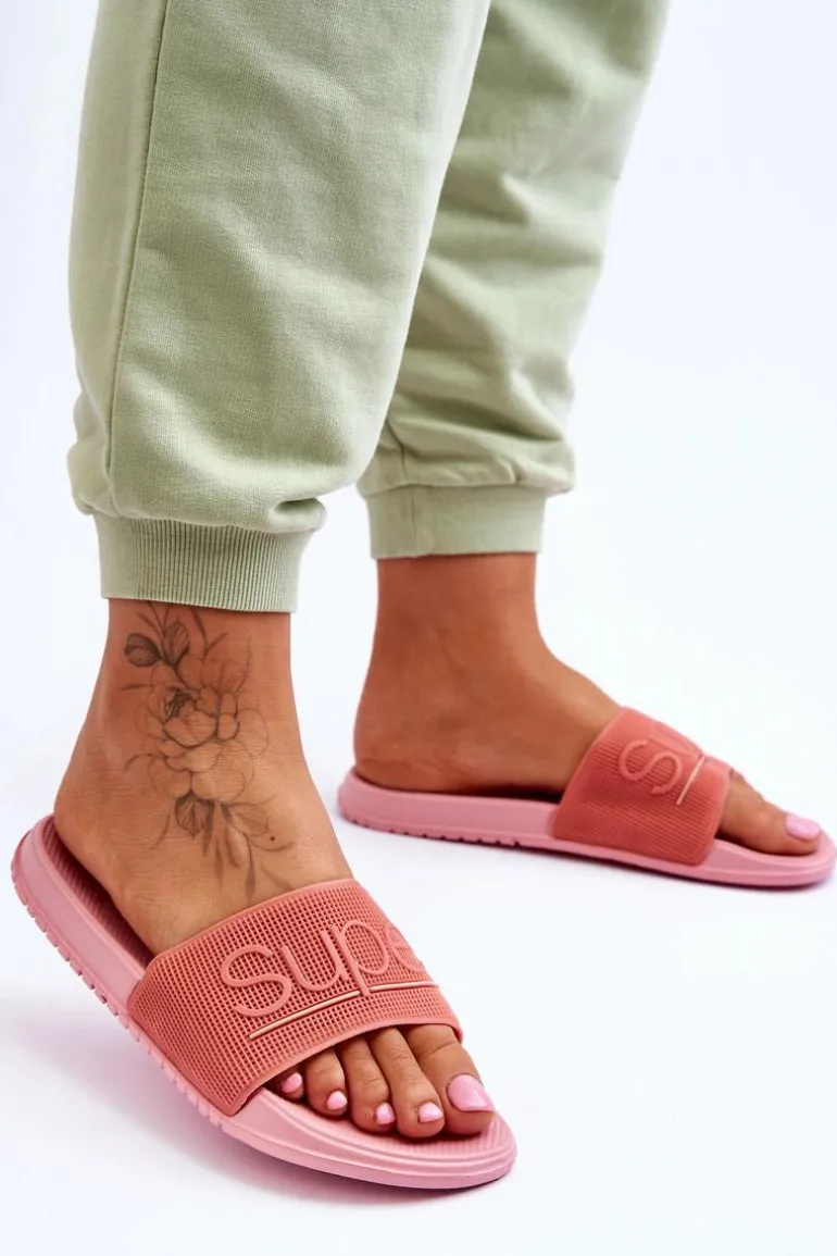 Lekkie Damskie Klapki Z Napisem Różowe Merry