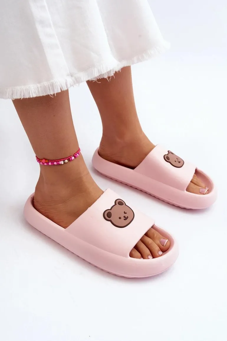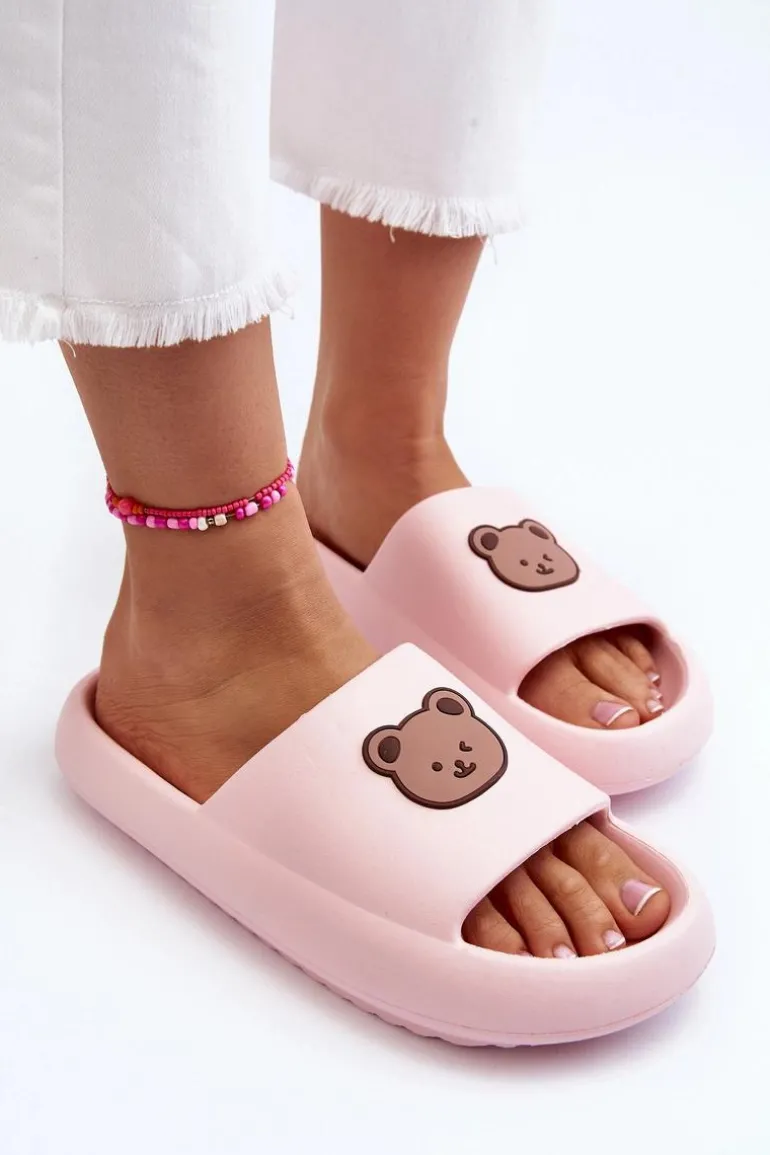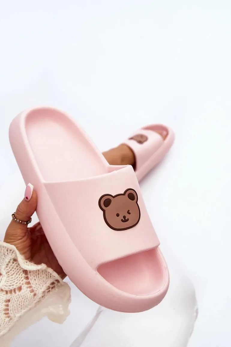 Lekkie Damskie Piankowe Klapki Z Misiem Różowe Lia