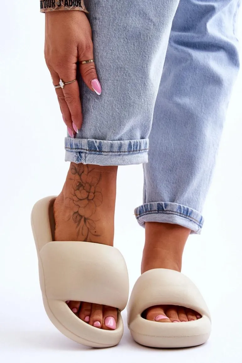 Lekkie Piankowe Damskie Klapki Na Platformie Beżowe Milton