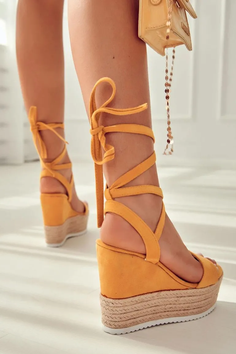 Piękne sandały na koturnie z lnianą plecionką. Bardzo lekkie i wygodne w użytkowaniu. Wiązane wokół kostki. Sandały zostały wykonane z zamszowej eko skóry. Posiadają podeszwę z tworzywa sztucznego. Wyjątkowy model wzbogaci Twoją letnią garderobę! Idealne do zwiewnych sukienek. Świetnie sprawdzą się w upalne dni. Miękka wkładka z zamszowej eko skóry zapewni Twoim stopom komfort. Przy wyborze rozmiaru prosimy sugerować się tabelą rozmiarów.