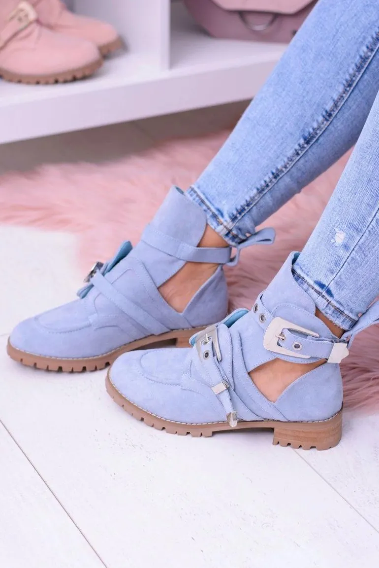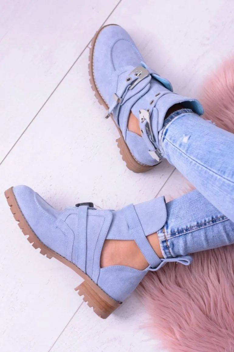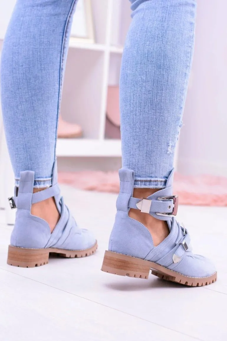 Lu Boo Błękitne Zamszowe Botki Z Wycięciami Rock Girl