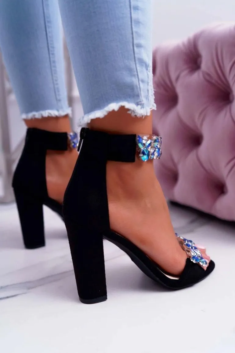 Lu Boo Czarne Sandały Cyrkonie Zamsz Lambada