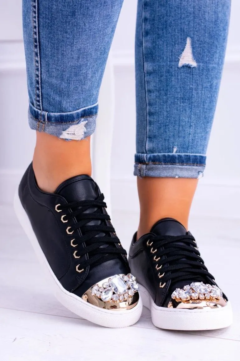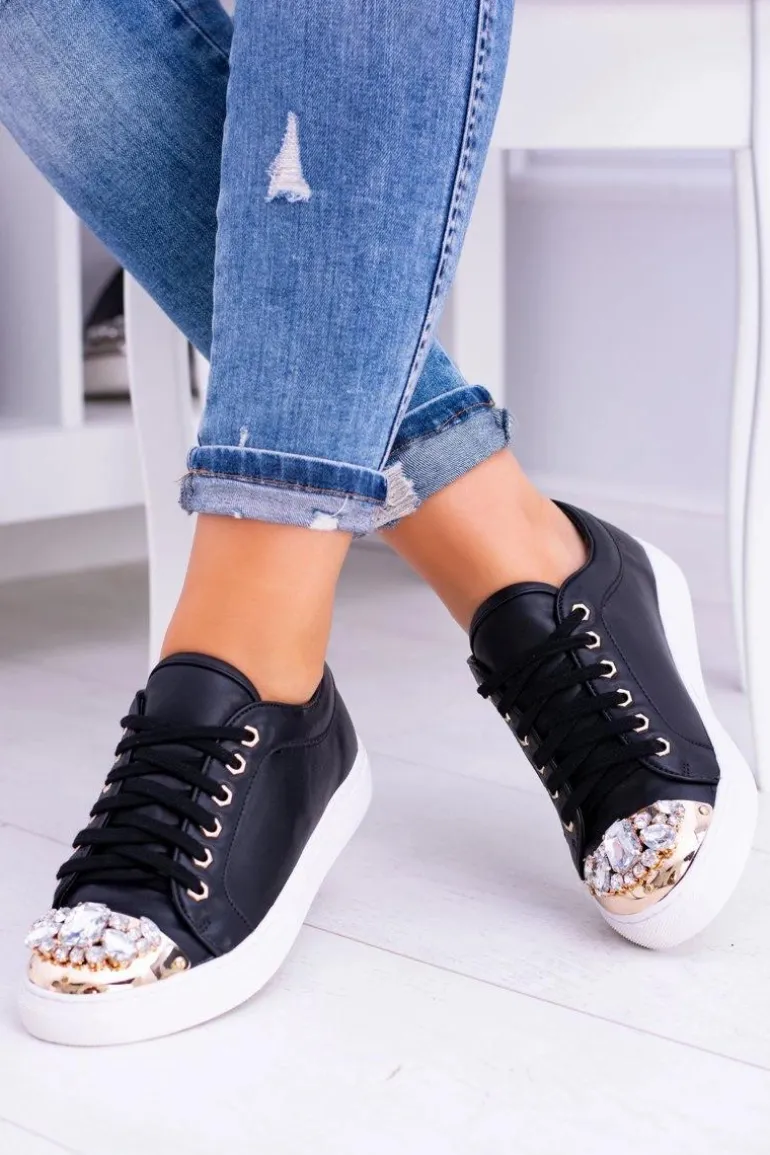 Lu Boo Czarne Trampki z Błyszczącymi Kryształami
