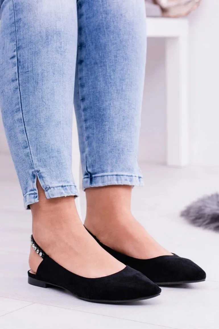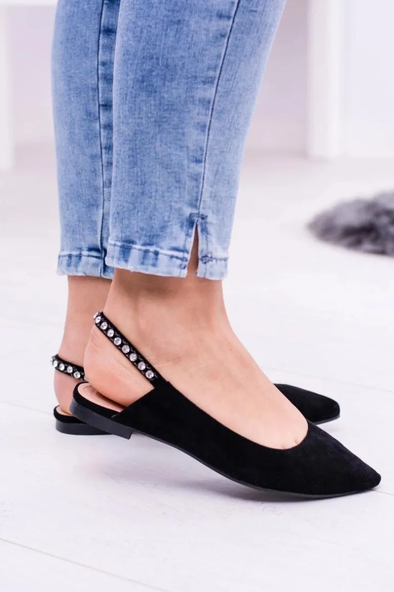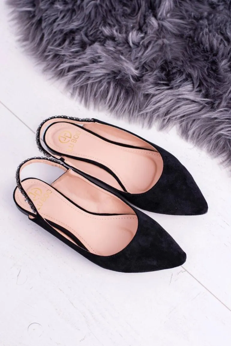 Lu Boo Czarne Zamszowe Balerinki w Szpic Cyrkonie Macron