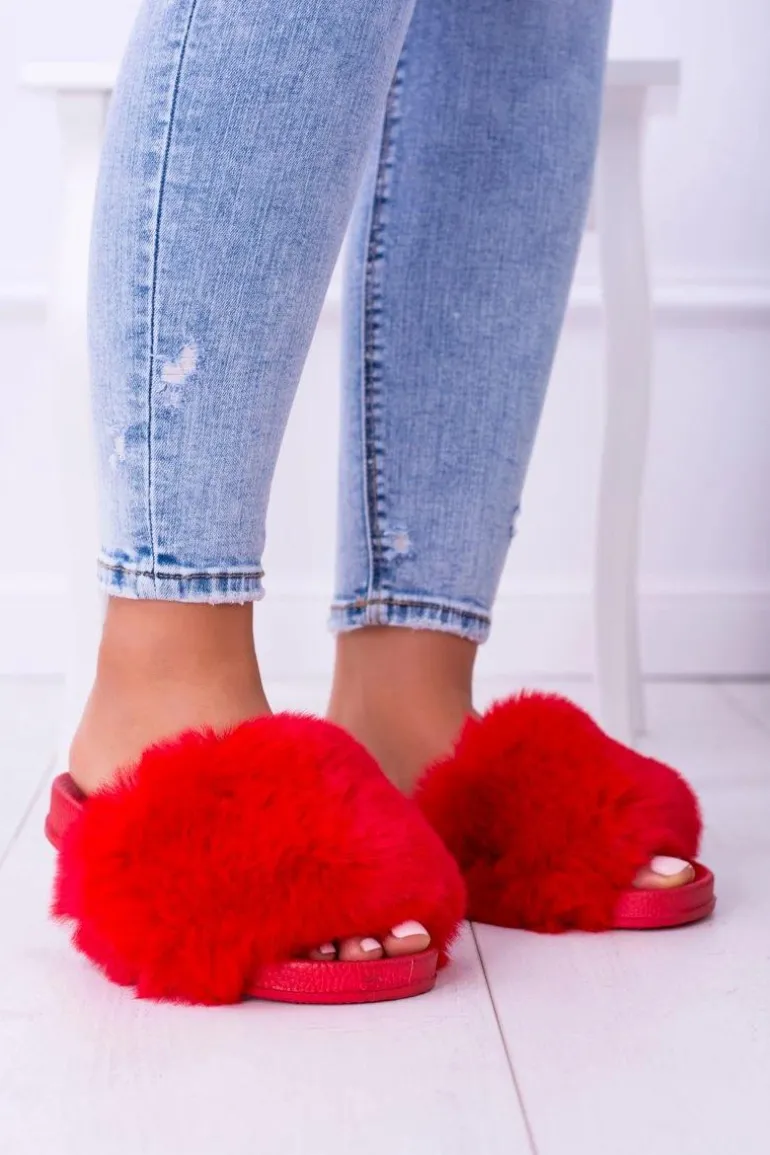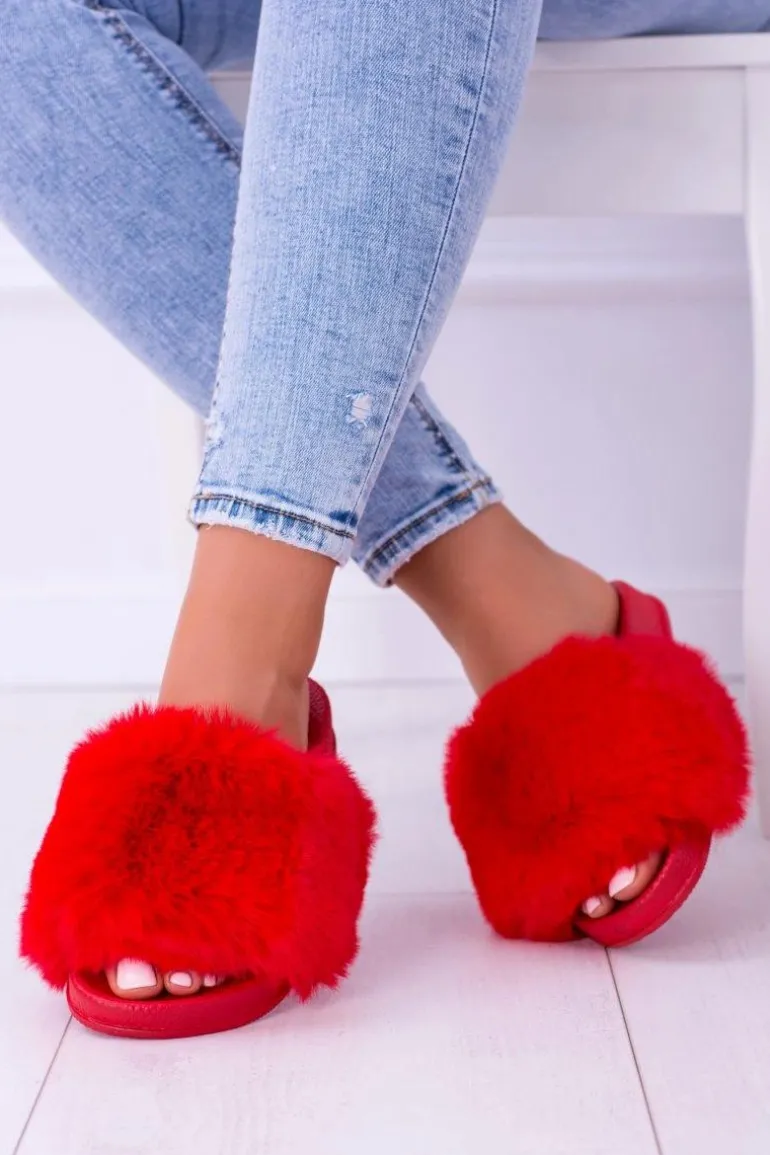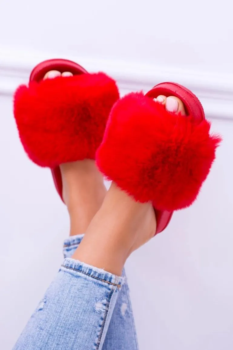 Lu Boo Czerwone Damskie Klapki Z Futerkiem FUR XXL