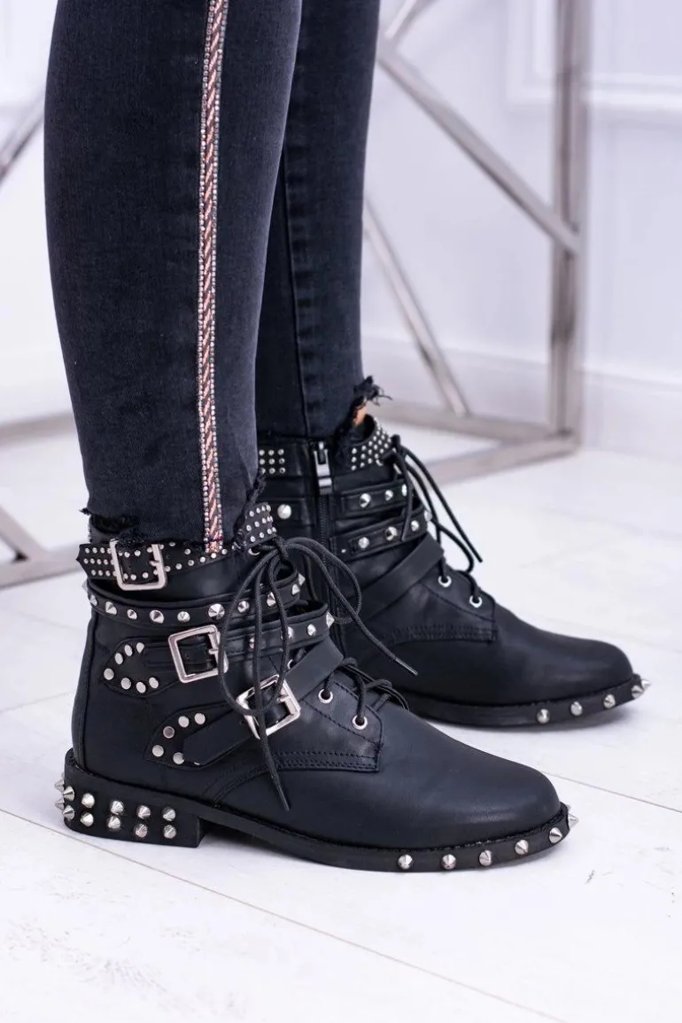 Lu Boo Damskie Botki Verona Z Ćwiekami Kolce Klamry Rock