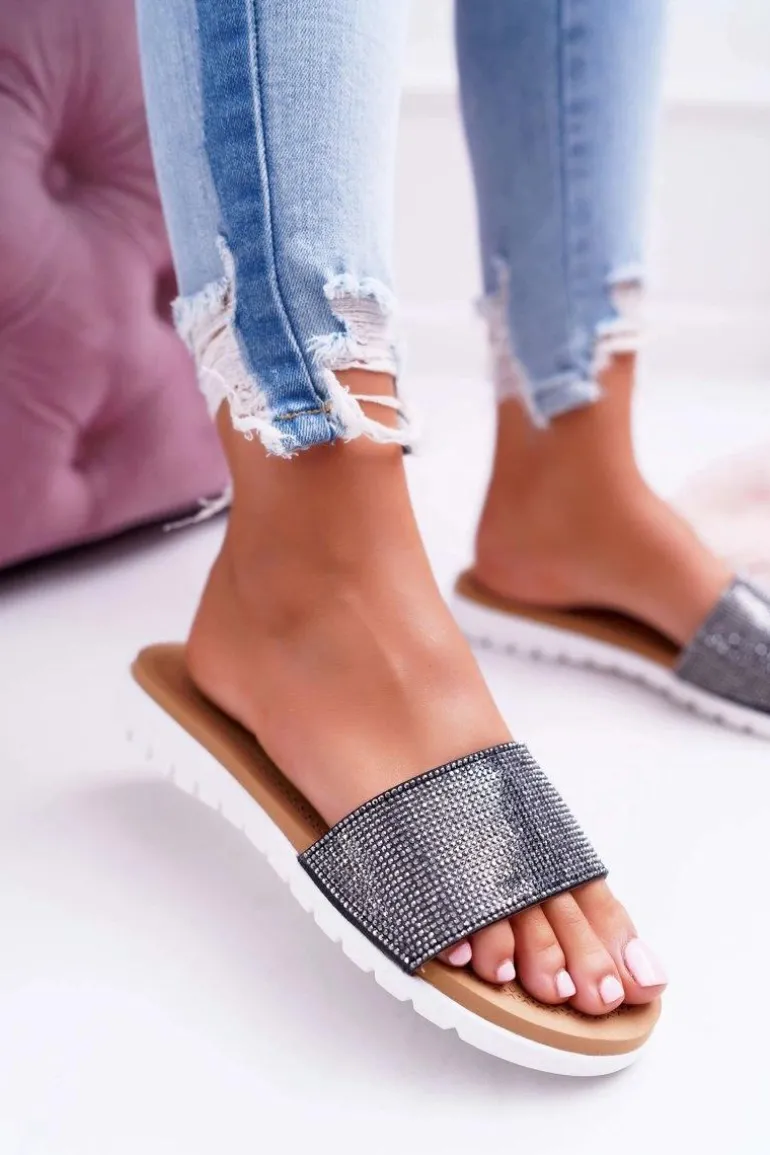 Lu Boo Damskie Czarne Klapki Z Cekinami Goodies