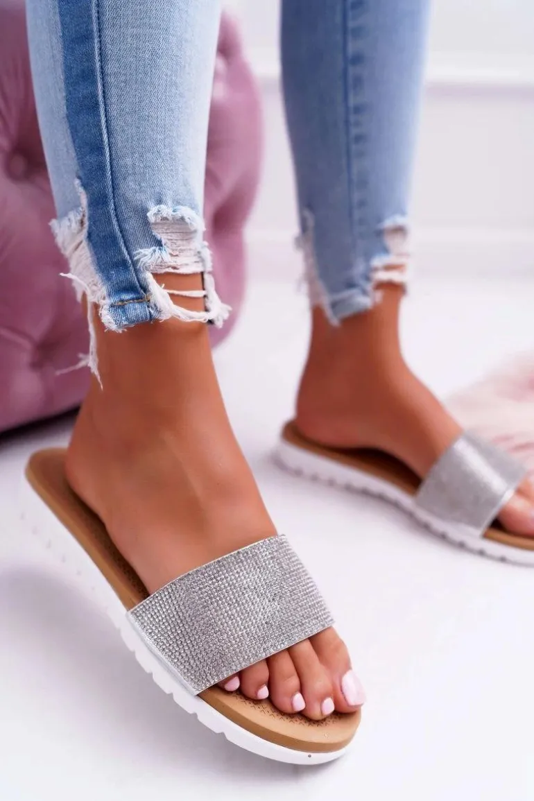 Klapki to nieodłączny element kobiecych stylizacji podczas gorących letnich dni. Nie ma nic wspanialszego niż komfort przez cały dzień podczas wypadów z przyjaciółmi a ten zapewni nam delikatnie uniesiona podeszwa. Oprócz komfortu ważny jest też wygląd, ale o to też nie musimy się martwić! Zdobione pięknie mieniącymi się kryształkami klapki w okazyjnej cenie to strzał w 10! Daj się porwać szaleństwu, postaw na klapki Goodies od Lu Boo!