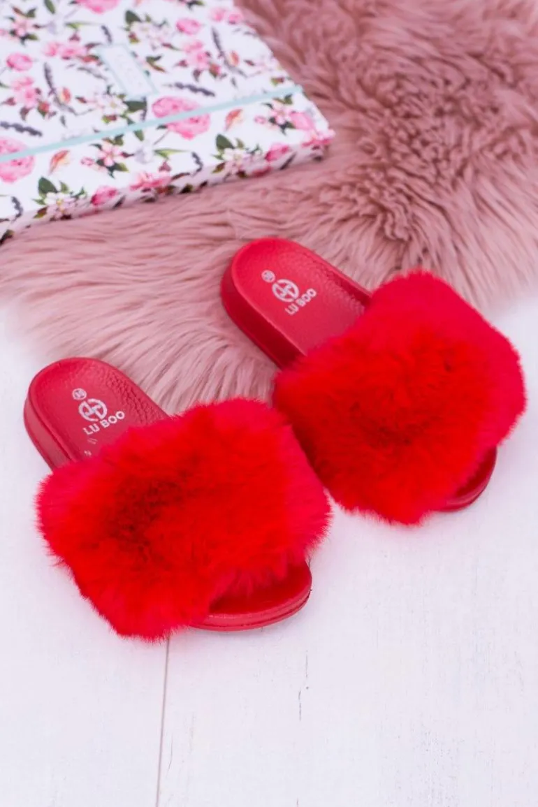 Lu Boo Dziecięce Czerwone Klapki Z Futerkiem Fur XXL Poli