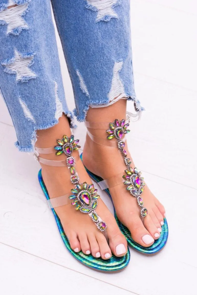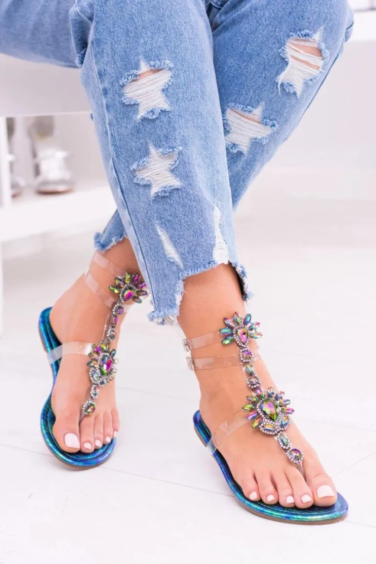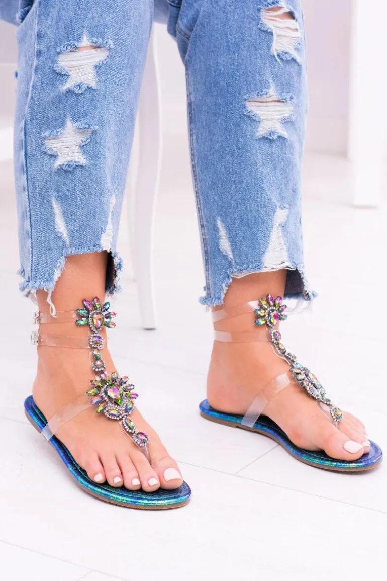 Lu Boo Eleganckie Benzynowe Sandały Cyrkonie Nomire