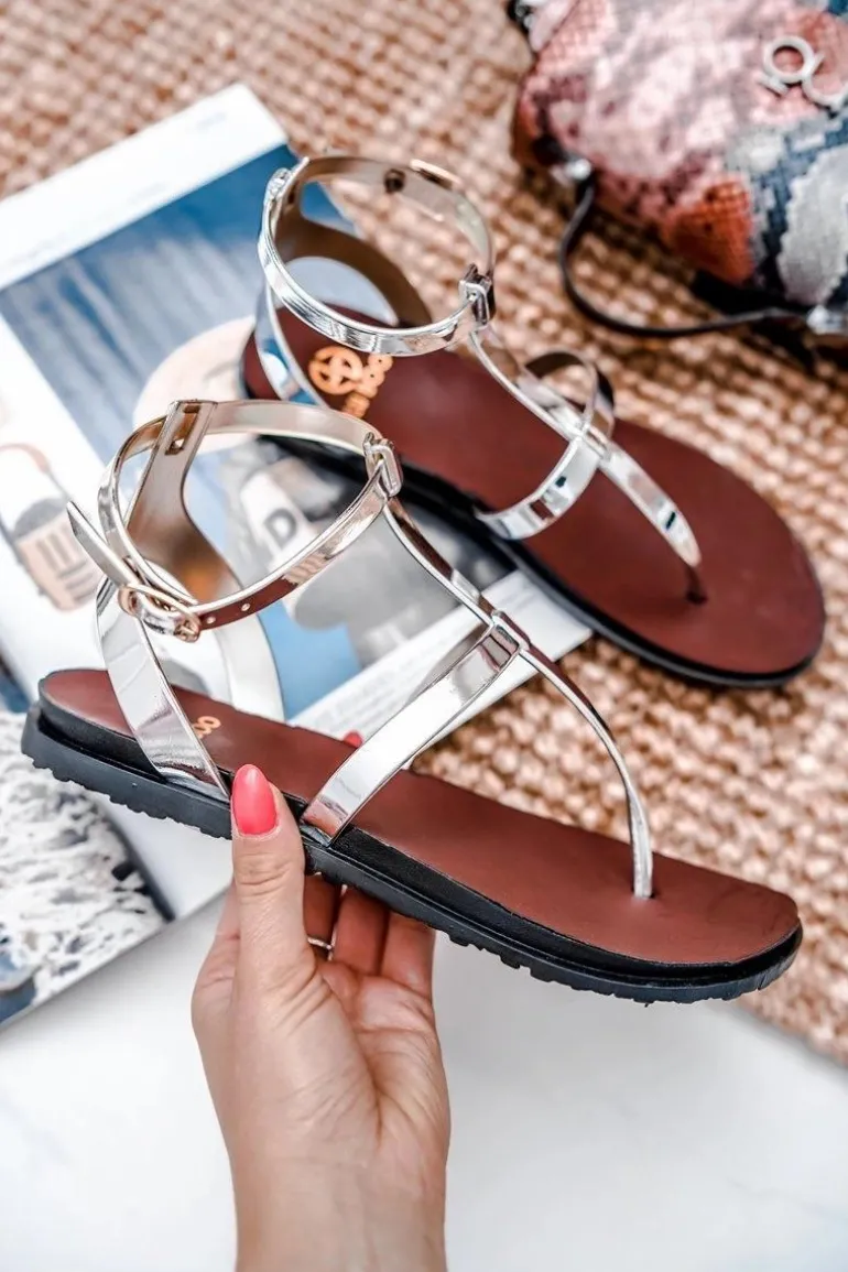Lu Boo Srebrne Lustrzane Sandałki Rzymianki Japonki Lento