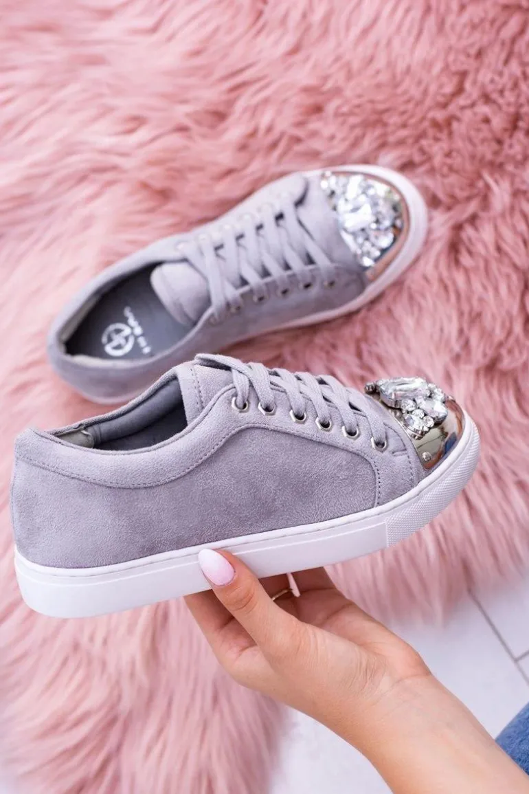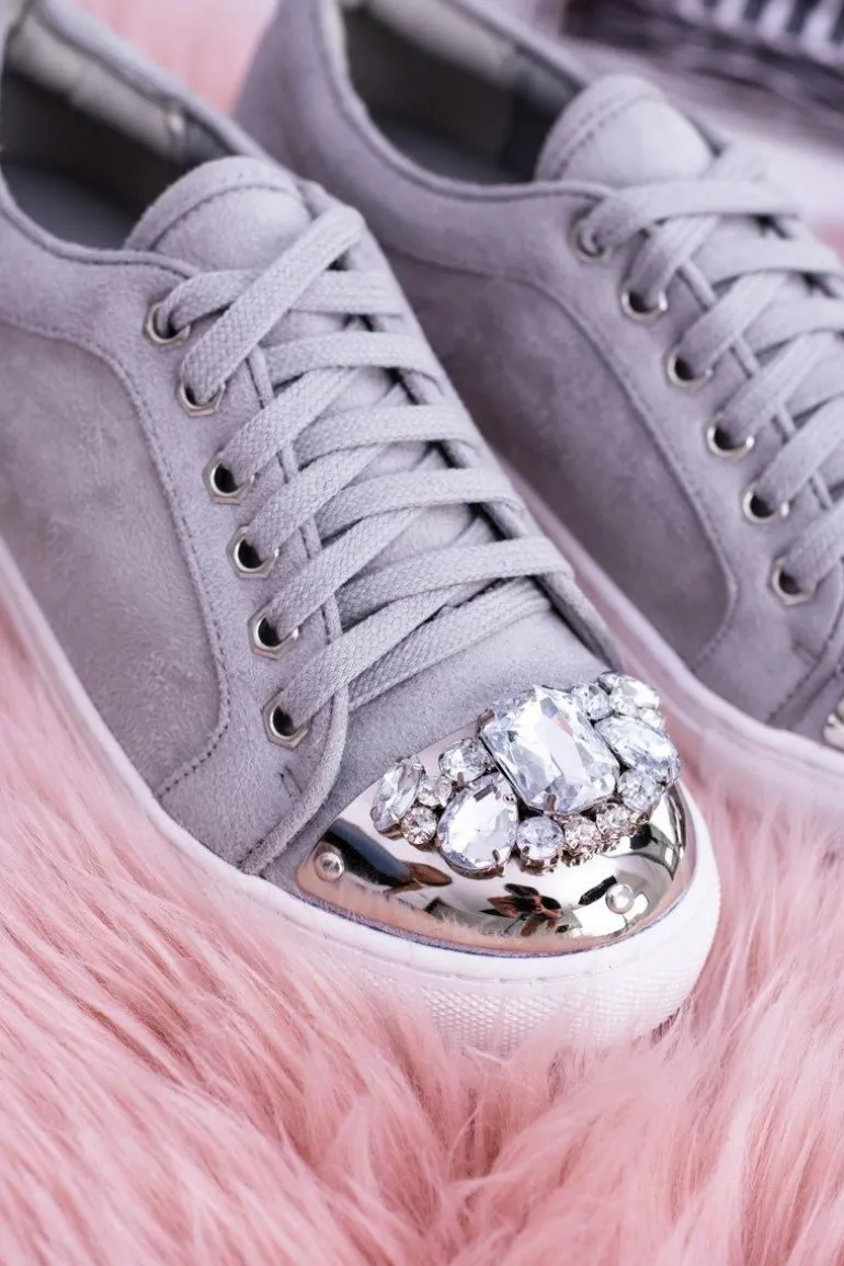 Lu Boo Szare Trampki z Błyszczącymi Kryształami