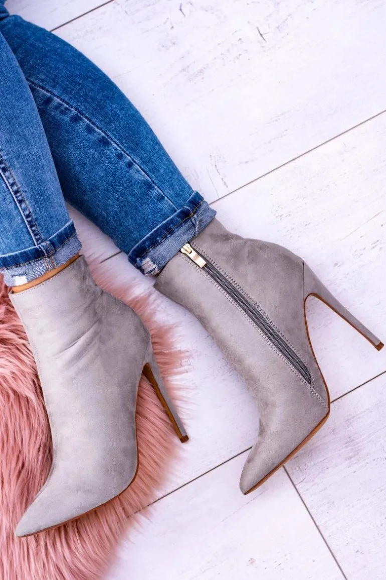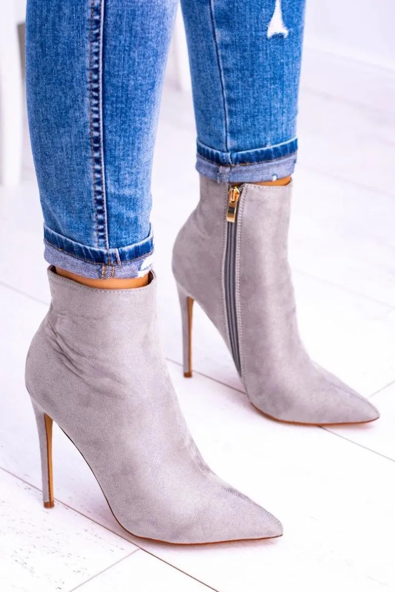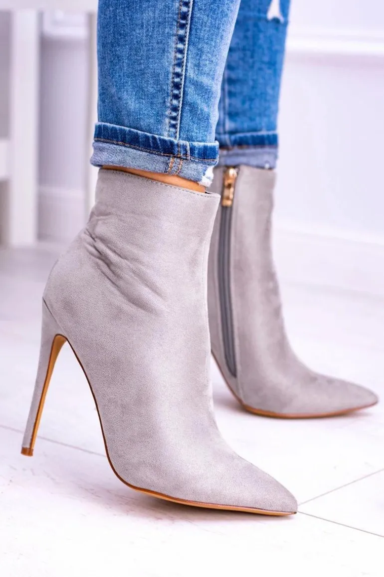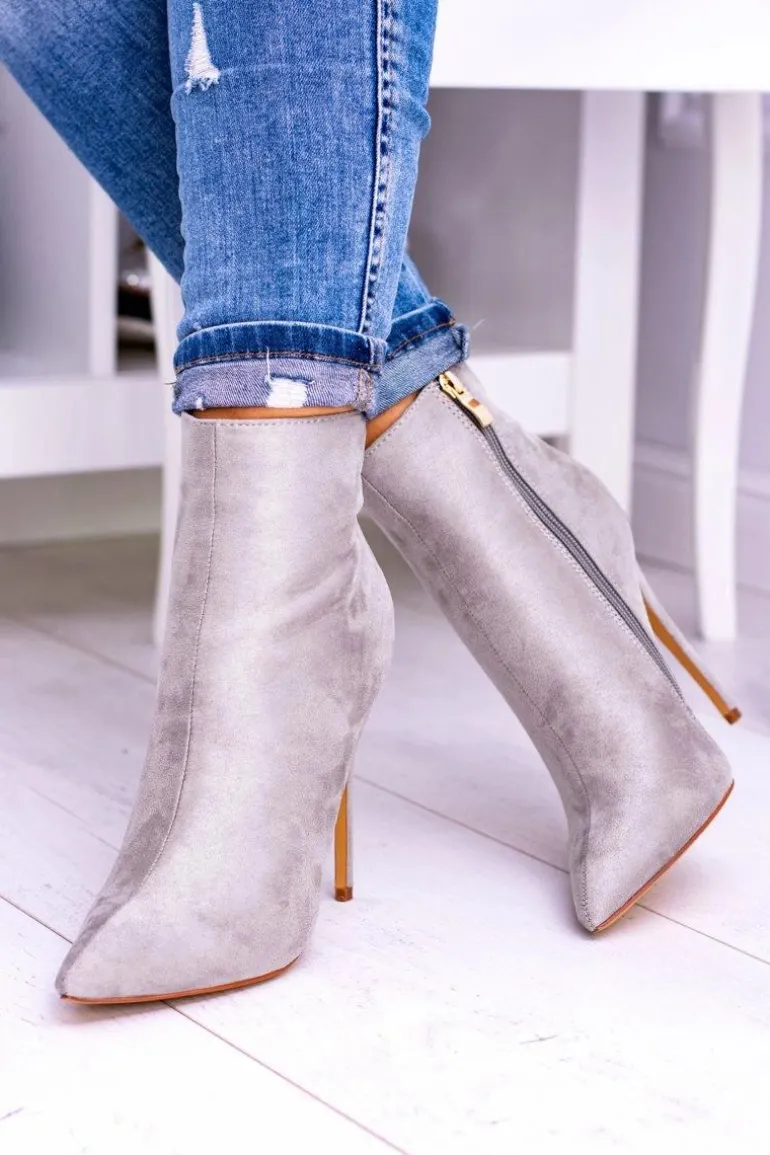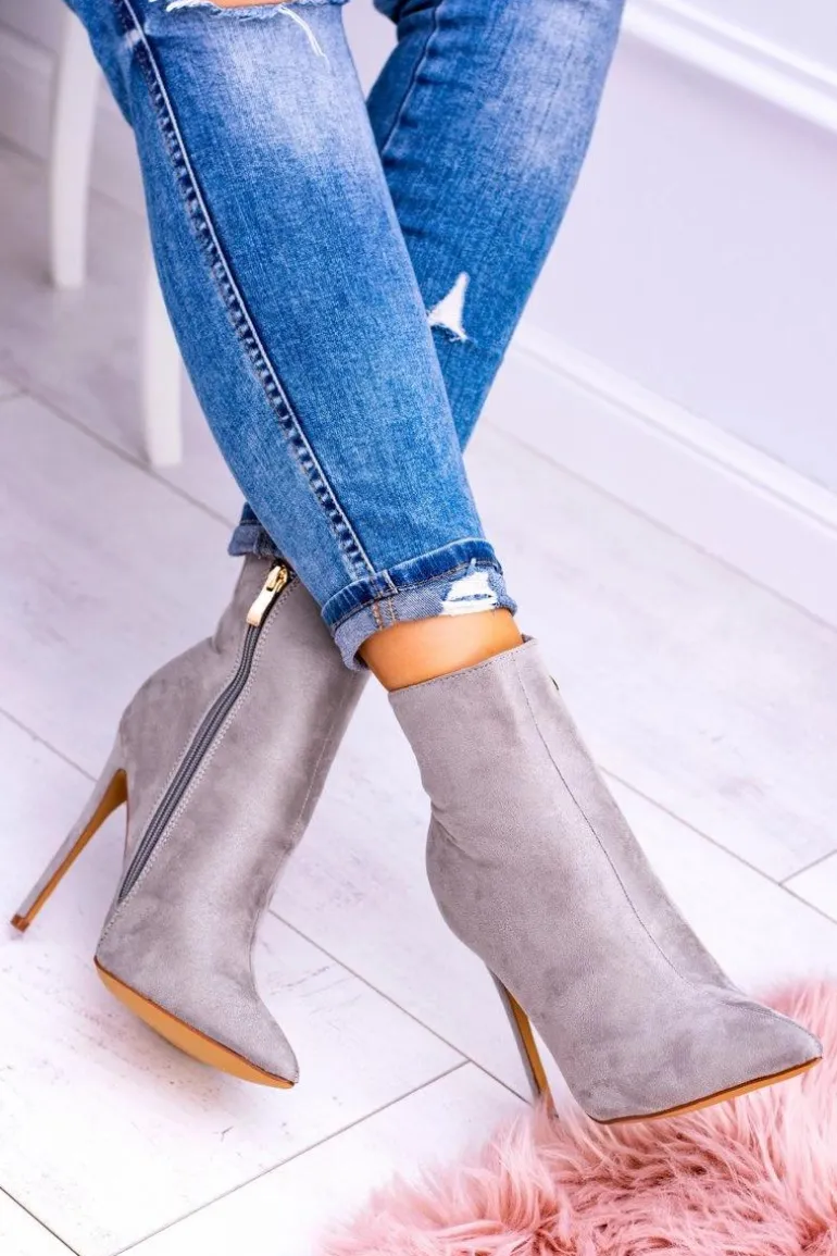 Lu Boo Szare Zamszowe Botki na Szpilce Veneci