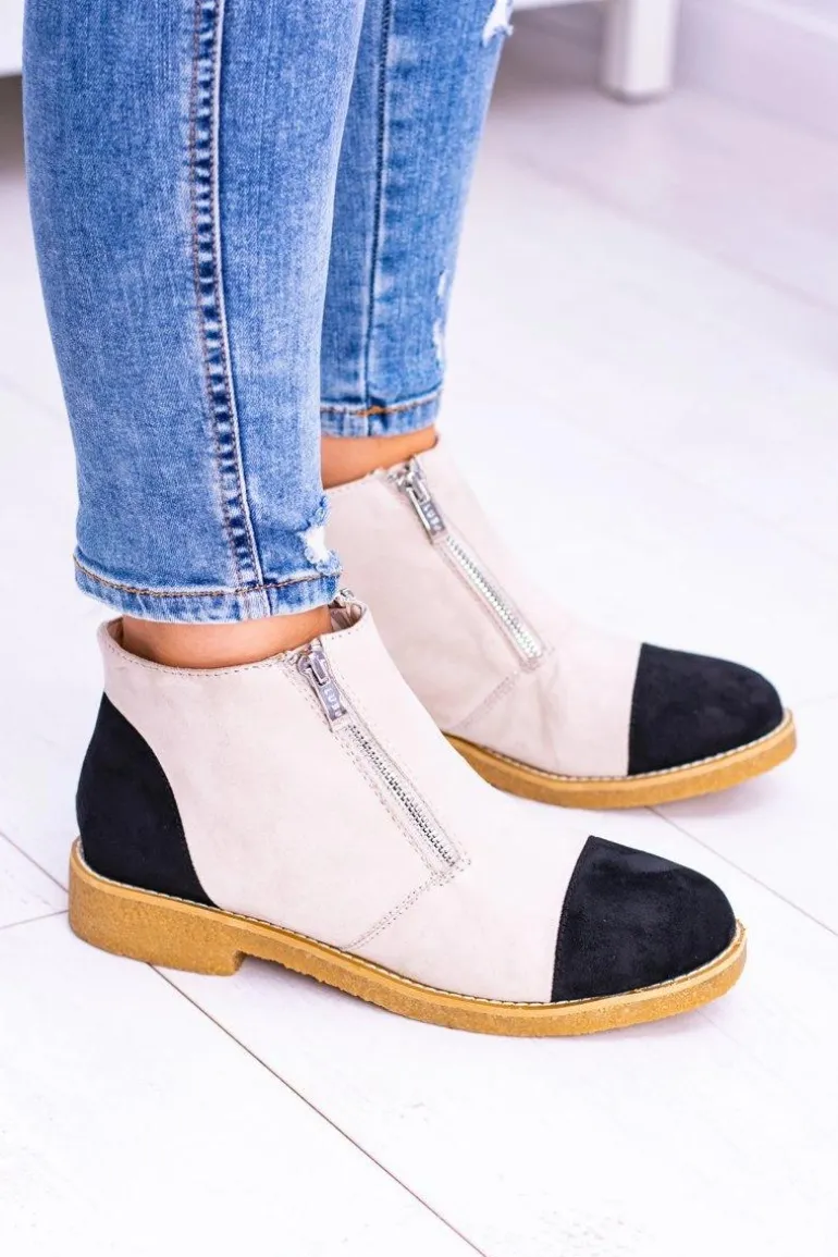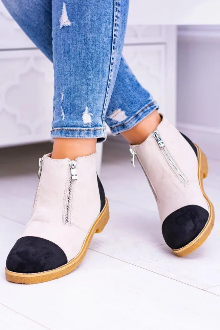 Lu Boo Zamszowe Beżowe Botki Z Suwakami Inez