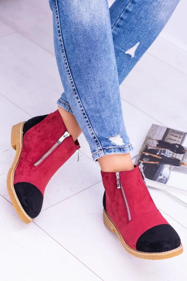Lu Boo Zamszowe Bordowe Botki Z Suwakami Inez