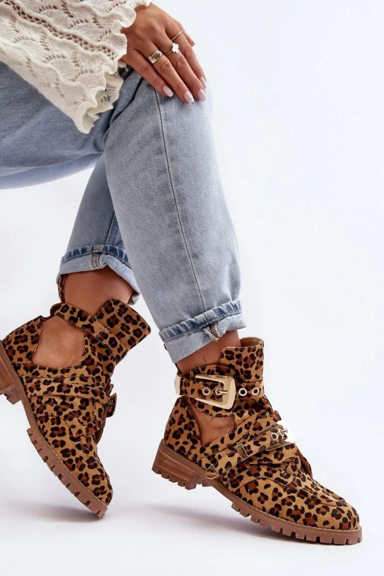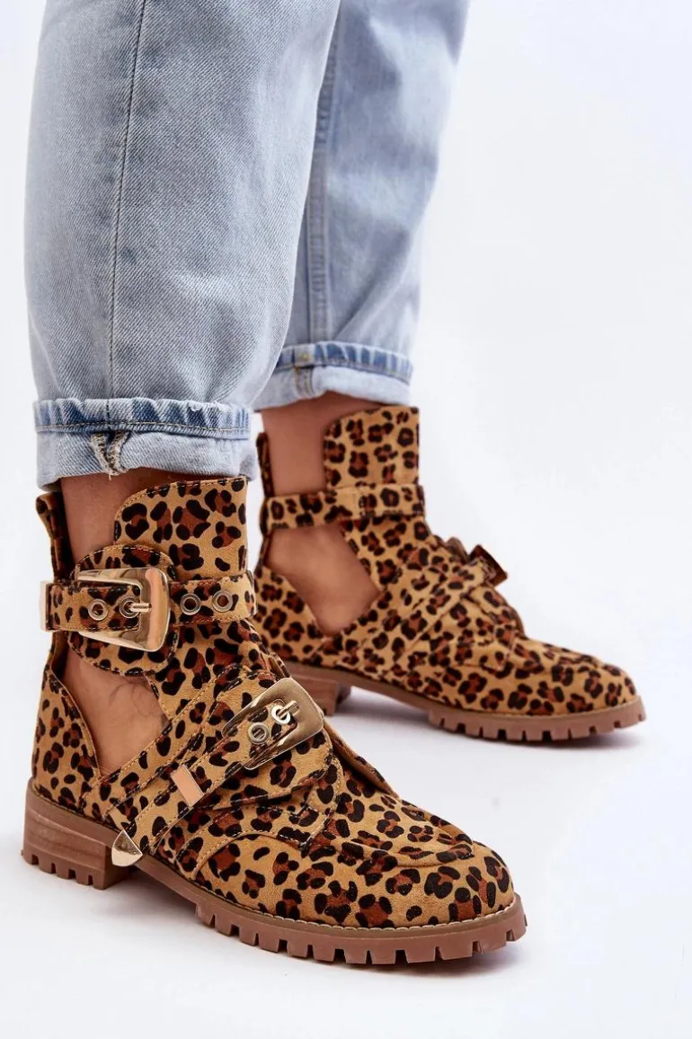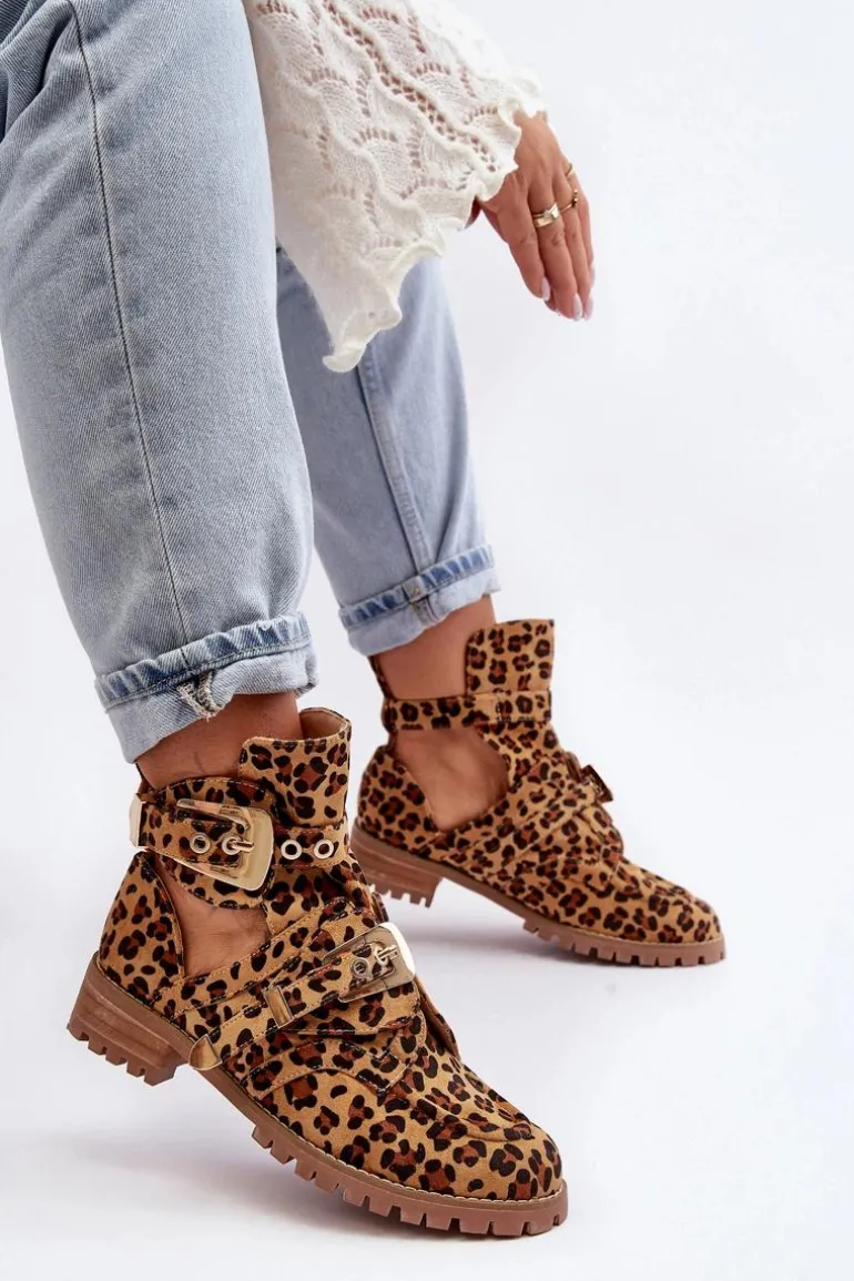 Lu Boo Zamszowe Botki Z Wycięciami Panterka Rock Girl