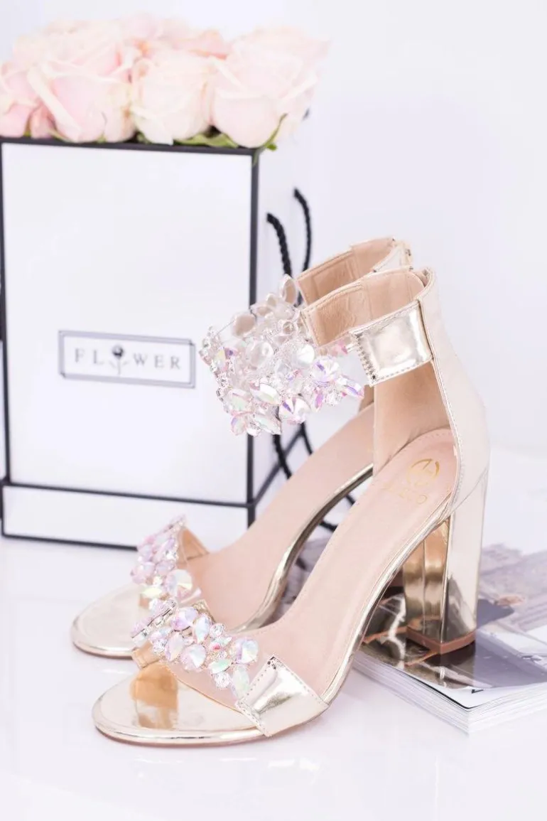Lu Boo Złote Lustrzane Sandały Cyrkonie Lambada