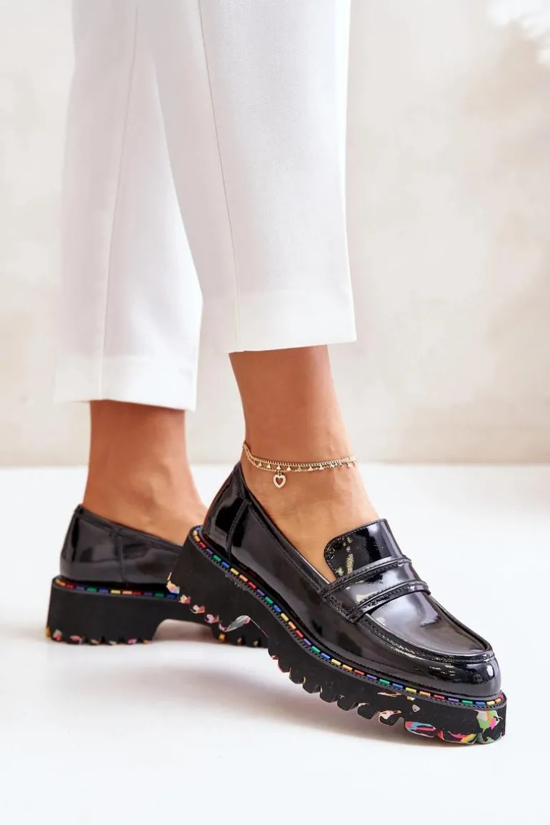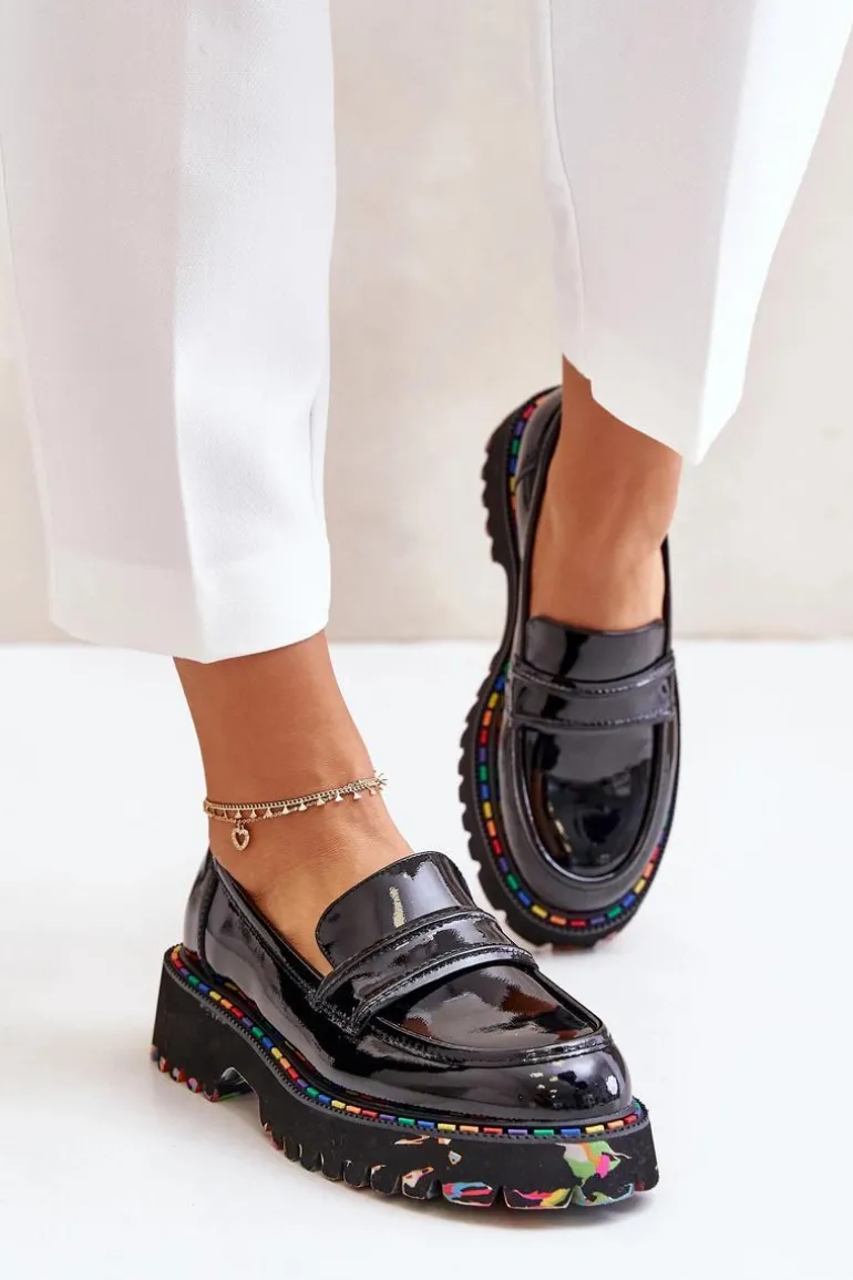 Masywne Mokasyny Damskie Lakierowane Artiker 55C0489 Czarne