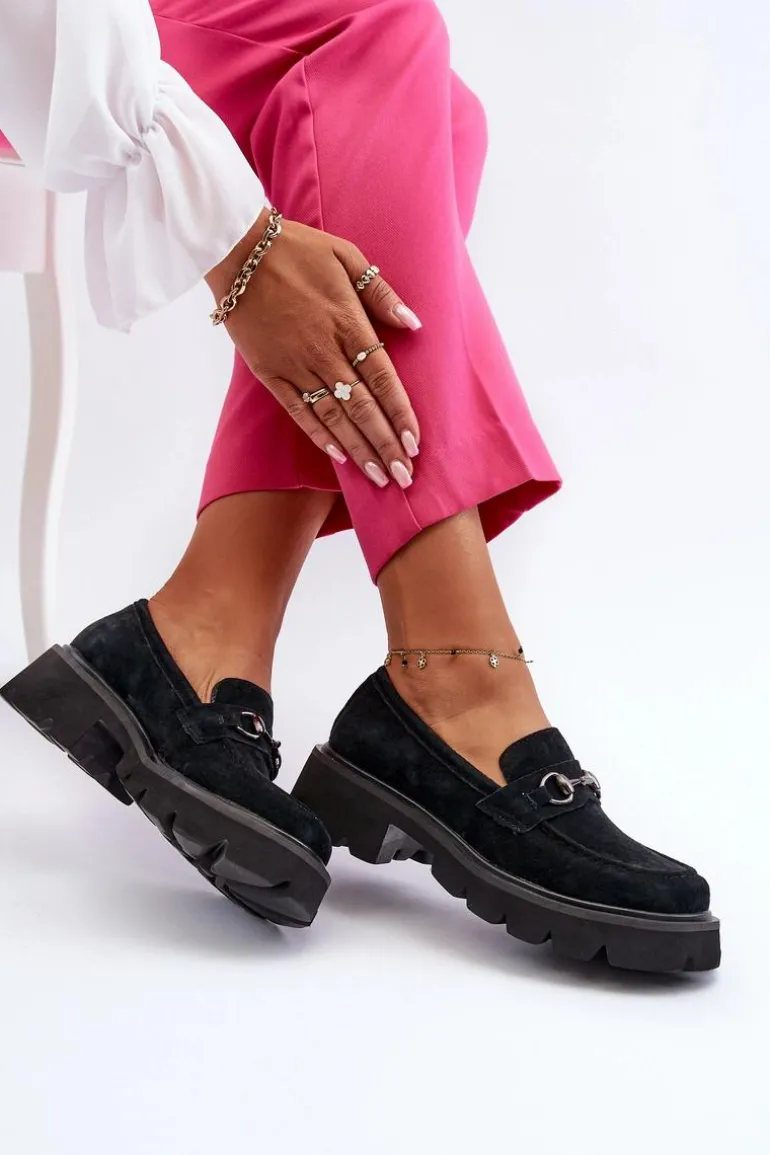 Masywne Mokasyny Damskie Zamszowe Czarne Neloria