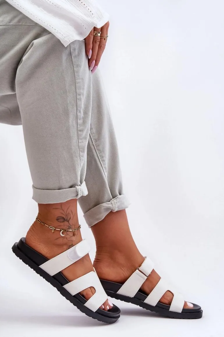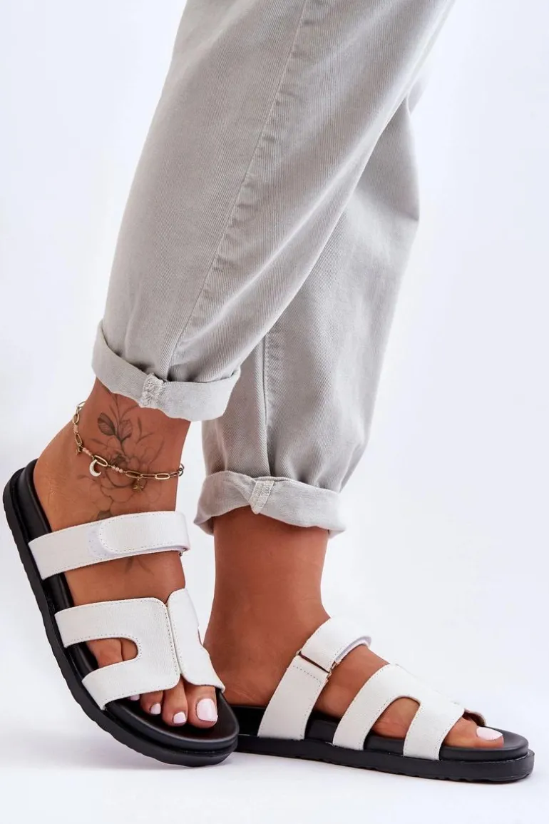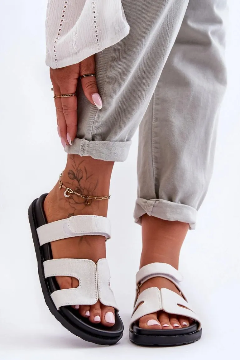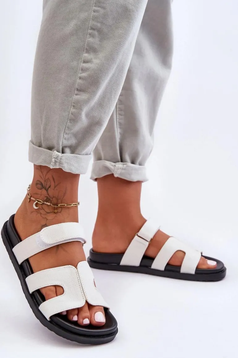 Materiałowe Damskie Klapki Na Rzep Białe Jose