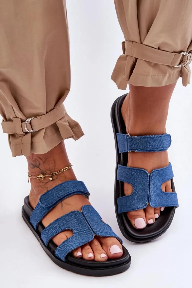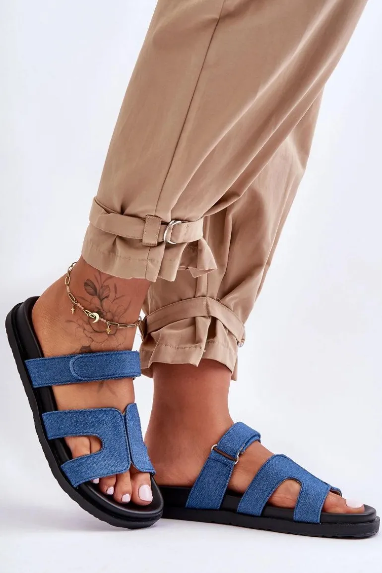 Materiałowe Damskie Klapki Na Rzep Ciemnoniebieskie Jose