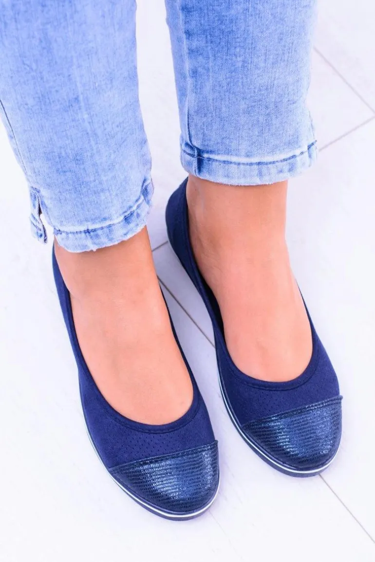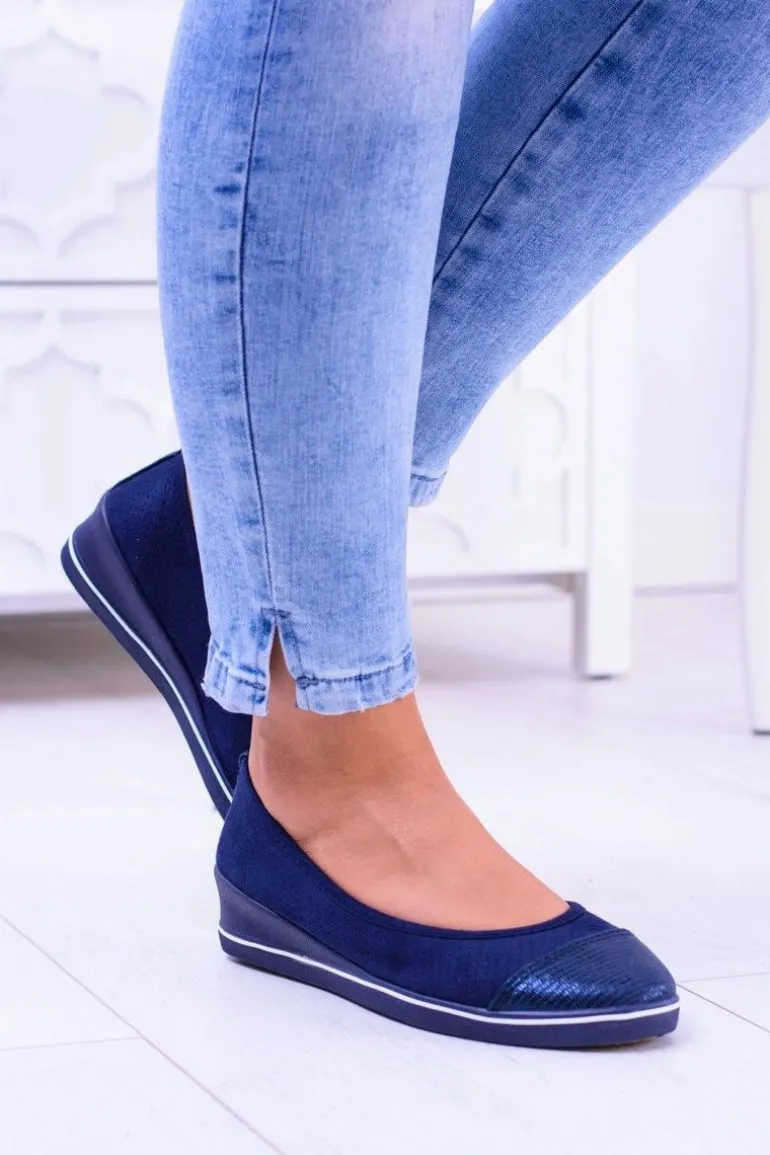 Materiałowe Granatowe Baleriny Na Koturnie Elleni