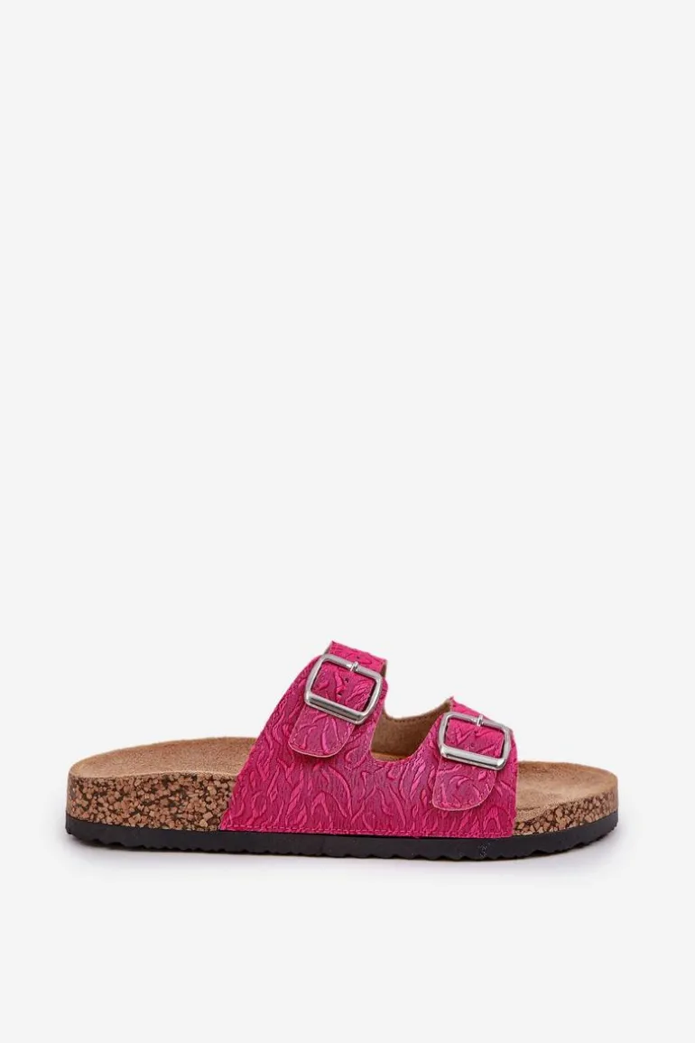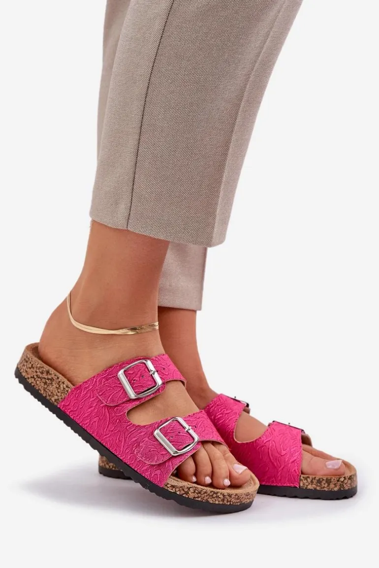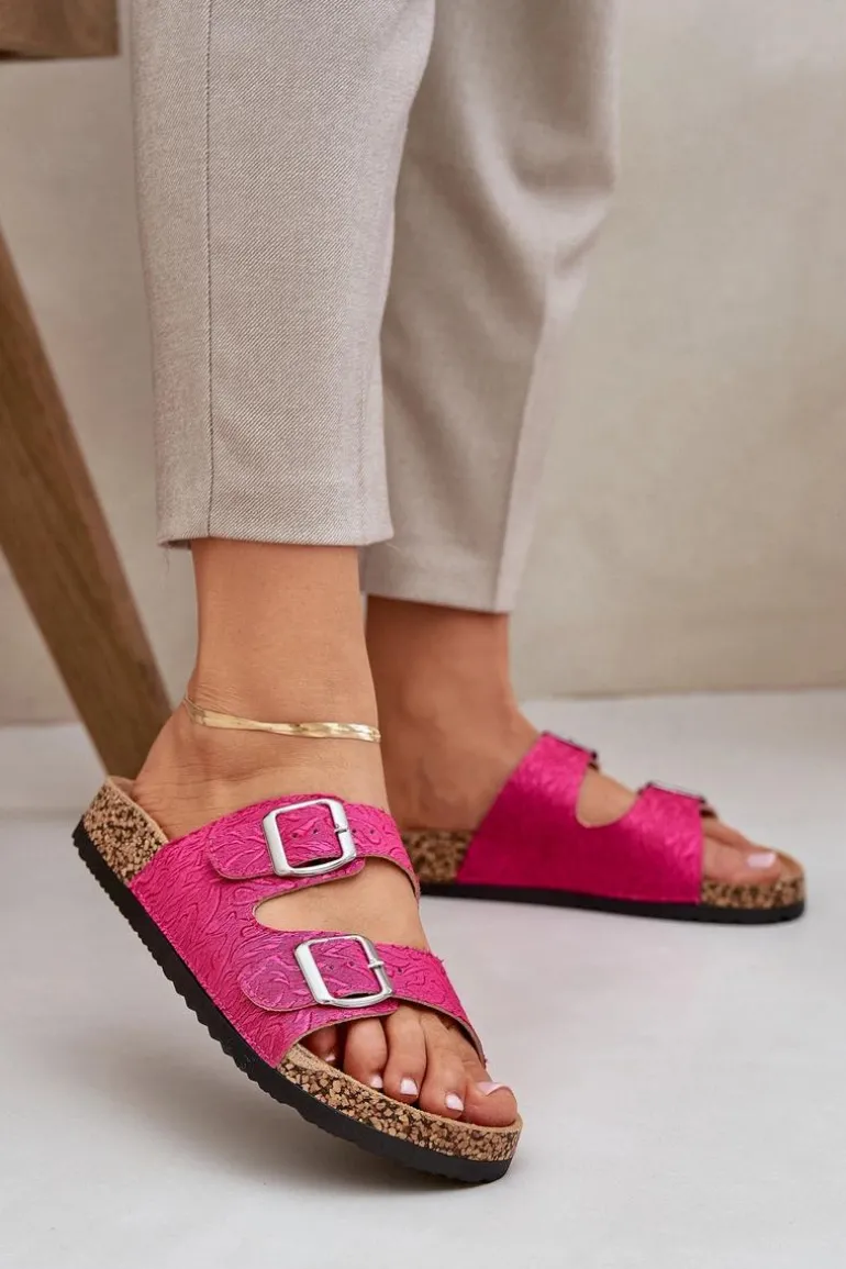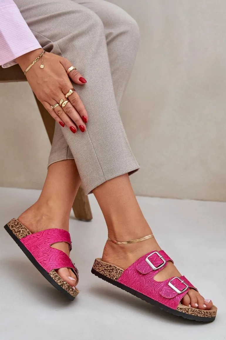 Materiałowe Klapki Na Korkowej Podeszwie Z Klamrami Fuksja Atera