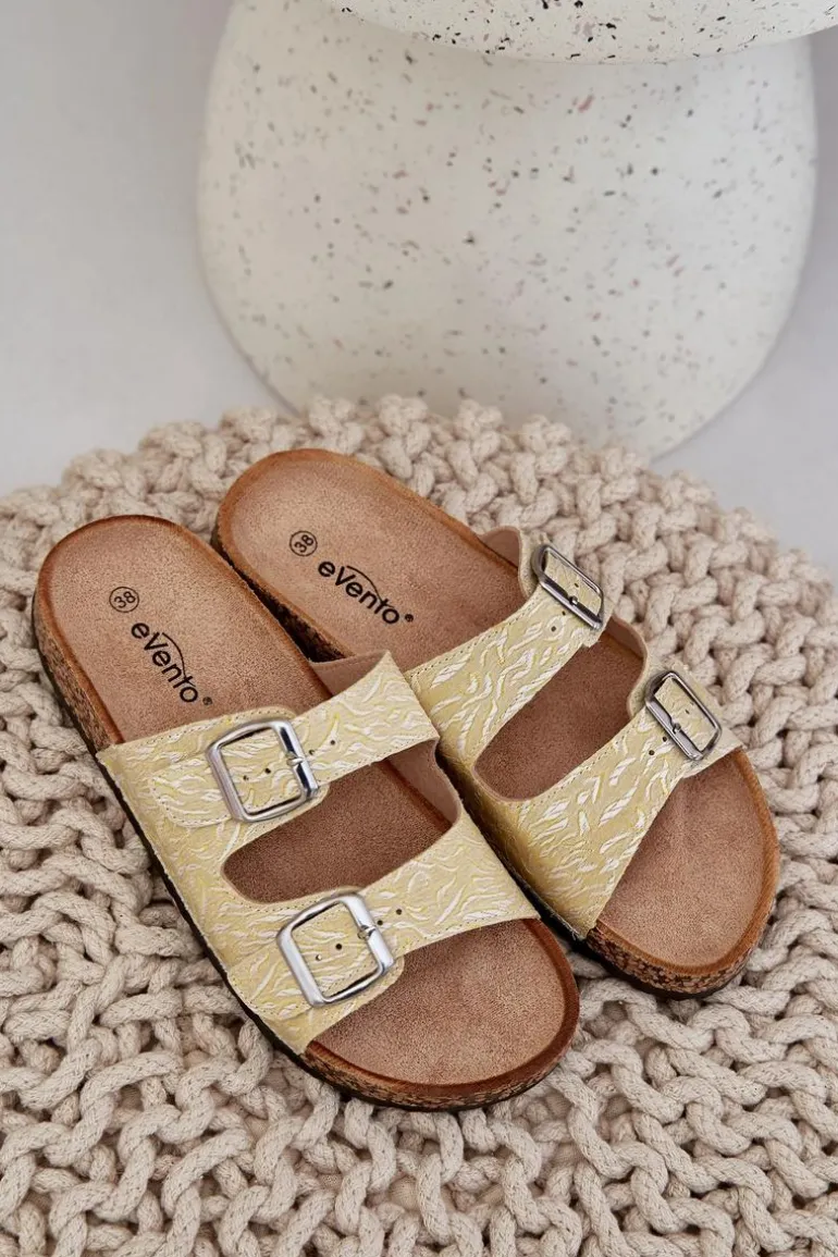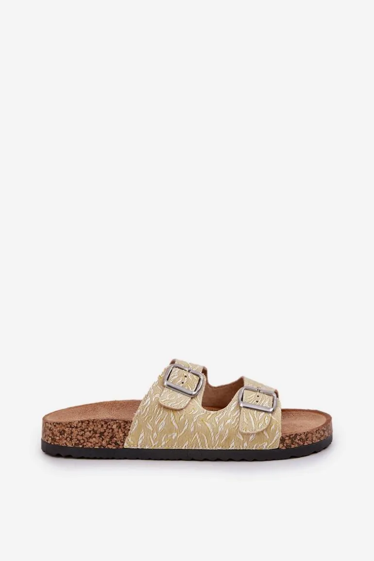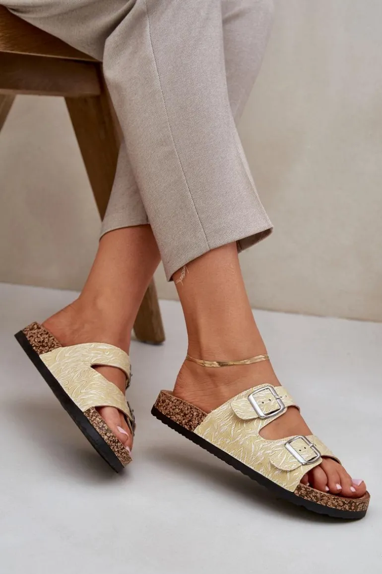 Klapki damskie wykonane z materiału tekstylnego, to doskonała propozycja na ciepłe dni. Dwa paski z klamrami zapewniają łatwe dopasowanie do stopy, a korkowa podeszwa dodaje lekkości i modnego charakteru. Profilowana wkładka gwarantuje wygodę przez cały dzień, czyniąc te klapki idealnym wyborem na spacery czy wakacyjne wyjazdy. Komfort i styl w jednym! Przy wyborze rozmiaru rosimy sugerować się tabelą rozmiarów.