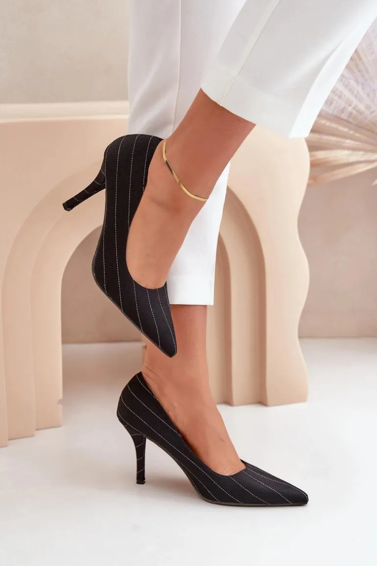 Damskie szpilki wykonane z wysokiej jakości materiału tekstylnego, które doskonale łączą elegancję i wygodę. Model z klasycznym, spiczastym noskiem optycznie wysmukla stopę, a miękka wkładka gwarantuje komfort nawet podczas długiego noszenia. Idealne na specjalne okazje lub dopełnienie stylowych, wieczorowych stylizacji. Przy wyborze rozmiaru prosimy sugerować się tabelą rozmiarów.