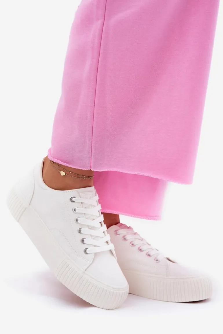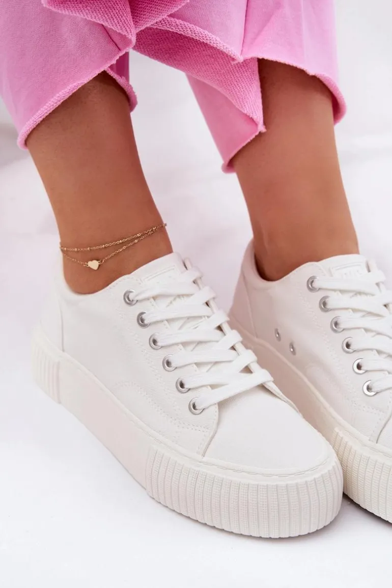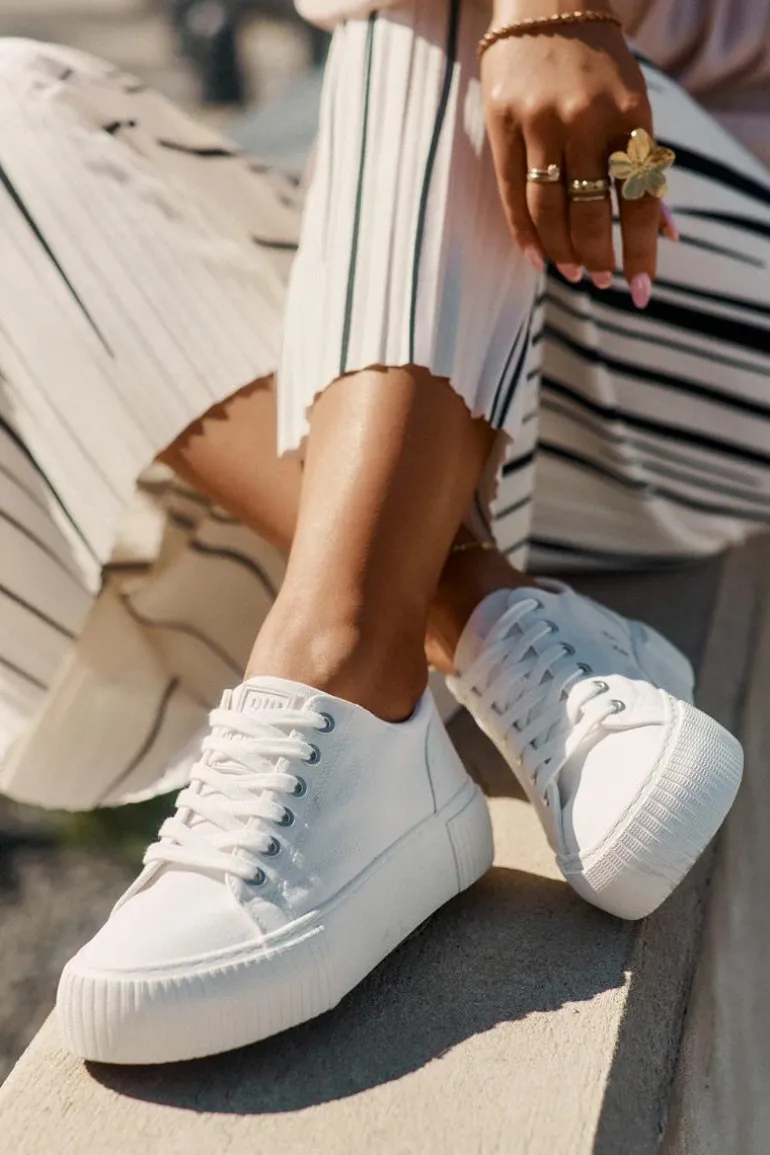 Trampki damskie od marki Big Star, wykonane z materiału tekstylnego. Idealne na co dzień, te trampki łączą wygodę z prostym, ponadczasowym stylem. Osadzone na platformie, która delikatnie unosi sylwetkę oraz zapewnia dodatkową wysokość i komfort. Doskonale pasują do wielu casualowych stylizacji, zapewniając komfort i lekkość na każdym kroku.