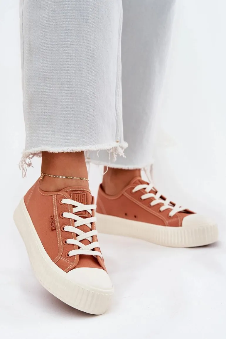 Damskie trampki marki Big Star, wykonane z materiału tekstylnego, to klasyczny wybór na co dzień. Osadzone na gumowej podeszwie, zapewniają stabilność i wygodę. Klasyczne sznurowanie pozwala na idealne dopasowanie do stopy, a zaokrąglone noski dodają komfortu przy każdym kroku. Miękka wkładka zapewnia dodatkową amortyzację, a ponadczasowy fason sprawia, że te trampki będą doskonałym uzupełnieniem wielu stylizacji. Idealne zarówno do casualowych, jak i bardziej swobodnych looków.