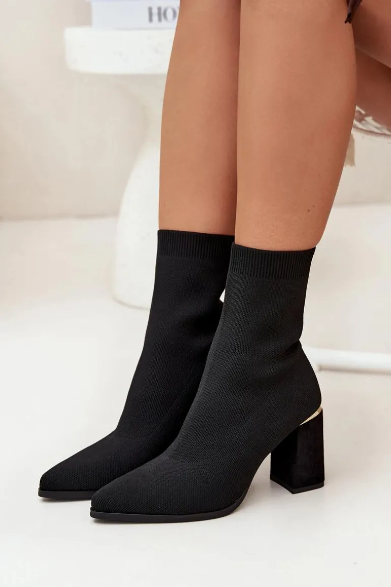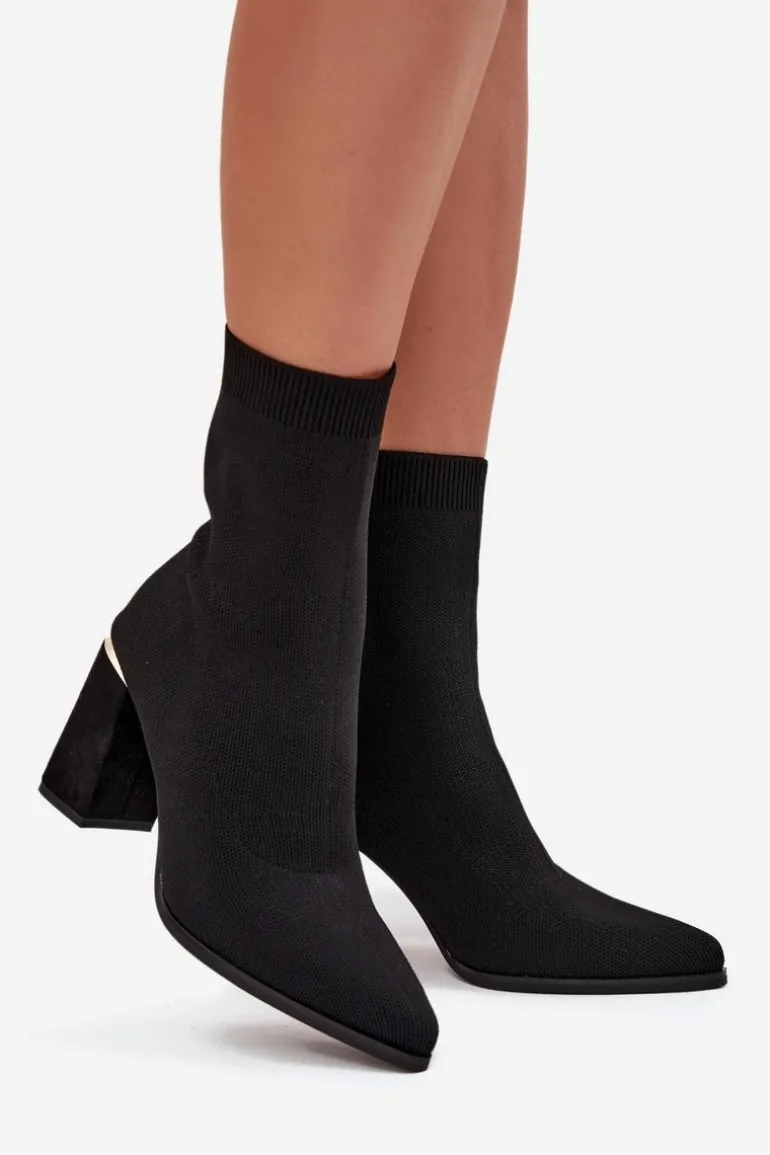 Botki damskie wykonane z materiału tekstylnego to doskonała propozycja na chłodniejsze dni. Osadzone na obcasie typu słupek, z subtelnym złotym elementem, który dodaje eleganckiego charakteru. Szpiczaste noski nadają im szyku, a ocieplenie tylko na wysokości stopy zapewnia komfort w zimniejsze dni. Doskonałe jesiennych stylizacji. Przy wyborze rozmiaru prosimy sugerować się tabelą rozmiarów.